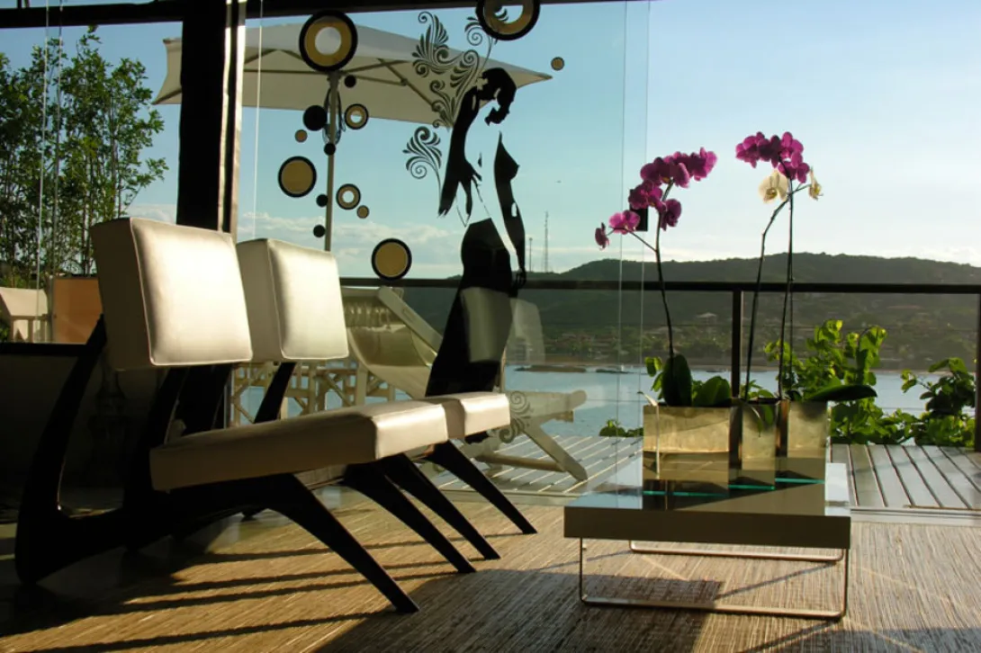 Integrado na natureza, o Insólito tem sistema próprio de tratamento de água e reaproveitamento das águas pluviais.Fica na Costa esquerda da Praia da Ferradura