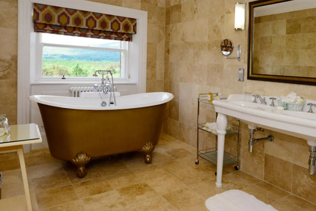 Os vales, lagos e montanhas de Misty West Highland cercam Fort William e as ruínas do castelo, a norte de Glasgow, enquanto as paredes de pedra envolvem quartos aconchegantes e antigas banheiras de pés.