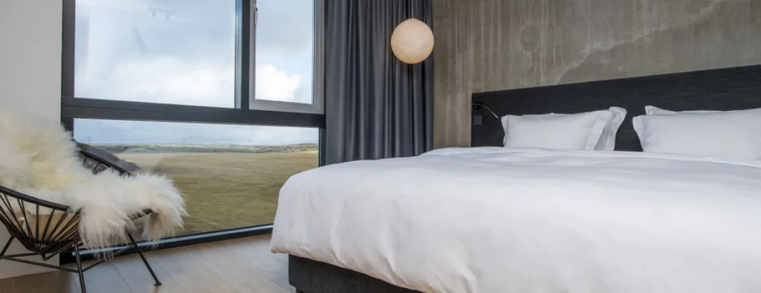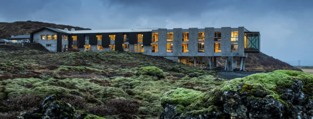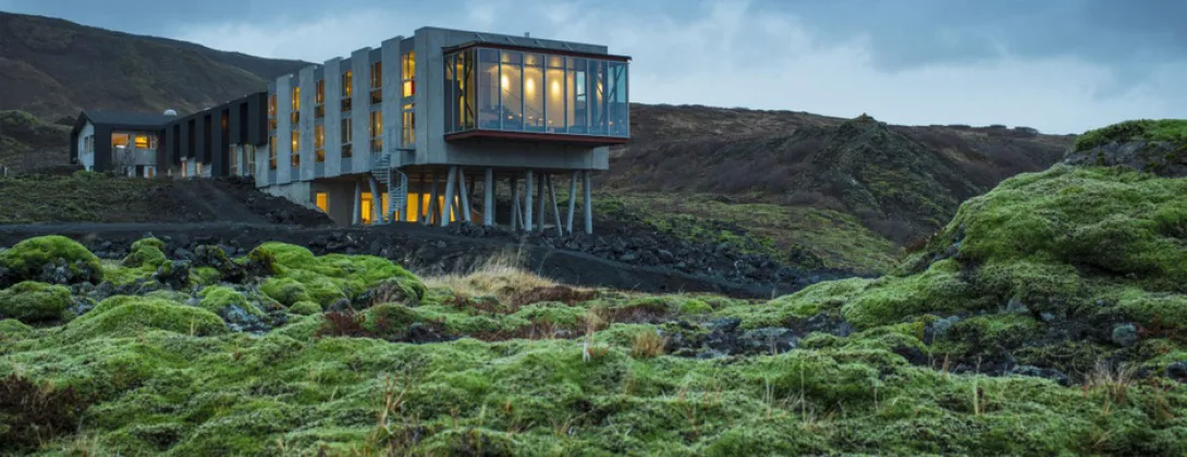 O Ion Hotel abriu há pouquíssimos meses no sopé do Monte Hengill, à beira do Parque Nacional Thingvellir - classificado como património mundial pela Unesco -, no sudoeste da Islândia.O design do hotel, com 46 quartos e apoiado por vigas de madeira flutuante, é inspirado no explorador Ingólfur Arnarson, que supostamente terá fundado Reykjavik no ano de 874; dizem que está instalado no exacto lugar onde ele terá desembarcado.Ilustrações da fauna islandesa amenizam os interiores severos que, reflectindo a implacável paisagem da Islândia, fazem uso dela, também, com mobiliário de madeira flutuante e abajures de lava.O restaurante serve lagostim islandês, truta ártica e skyr (iogurte caseiro).Para além da estrutura principal, um bar parece equilibrar-se precaria e aparentemente acima da encosta da montanha, com janelas de vidro do chão ao tecto em três lados, tornando-se um point fantástica para assistir à danças das luzes acima do Lago Thingvellir.Os aventureiros podem experimentar todos os tipos de actividades baseadas no gelo, como caminhadas, pesca, mergulho entre duas das placas tectónicas da Terra... ou então deixarem-se ficar no calor do hotel, onde o Lava Spa oferece tratamentos faciais e massagens - beneficiando de piscinas sub-zero para mergulhar.
