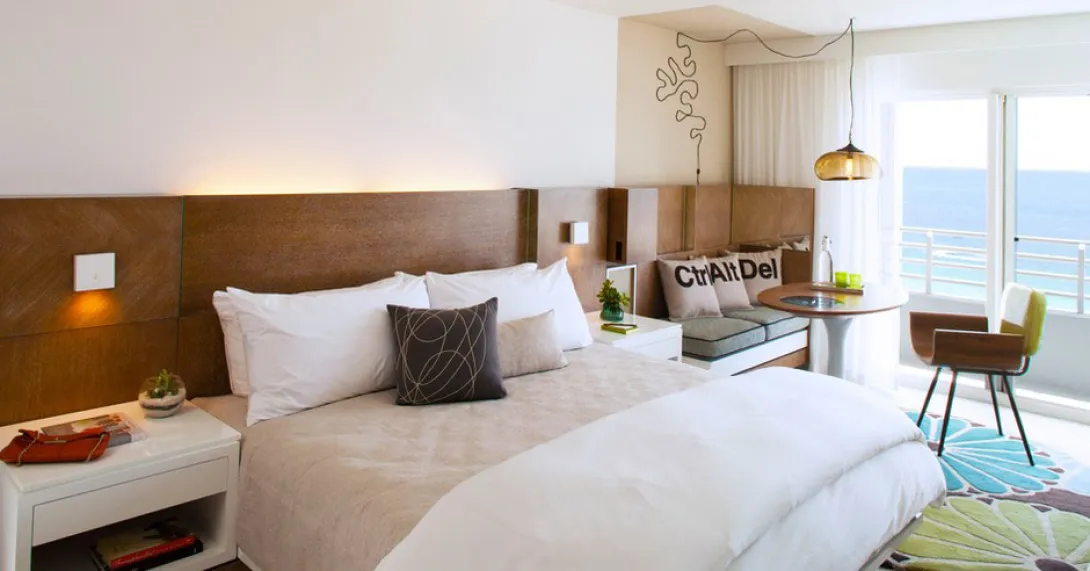 Quando tudo parecia crer que cada novo hotel que surgia nos EUA aplicava a mesma vibração vintage - fotos a preto-e-branco, estofos em estilo Chesterfield - esta torre de 1939 reabriu em South Beach com um sentido muito diferente de estilo.Caminhando na sua direcção deparamos com um átrio de inspiração Sixties: o quadro com palmeiras, as poltronas em forma de Bauhaus e as mesas baixas só precisam de Manhattans e cigarros para completar a vibração Mad Men.E há mais design de meados do século nos quartos: namoradeiras, cadeiras curvas e lâmpadas bolha de vidro que pairam sobre mesas pedestal.No geral, o efeito é de bom gosto, e as duas áreas de piscina e a vista para o mar do restaurante Florida Cookery têm um olhar mais contemporâneo, com muita madeira recicladada e paredes brancas.Dizem que o restaurante serve um bom hambúrguer de queijo a um muito bom preço para um South Beach hotel (US $14), mas a opção cooler para jantar é o Catch, um restaurante/clube com um menu de frutos do mar que varia de rolos de sushi a camarão picante.Atrai tantos foliões cheios de estilo/manias que quase se perde J Lo e o seu jovem namorado comendo sashimi numa mesa de canto.