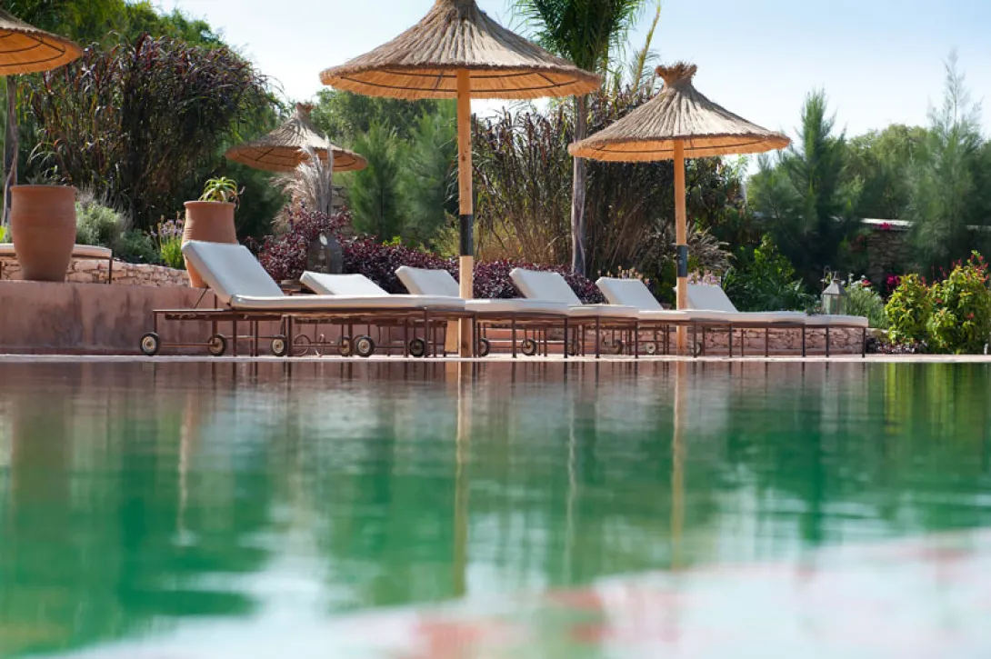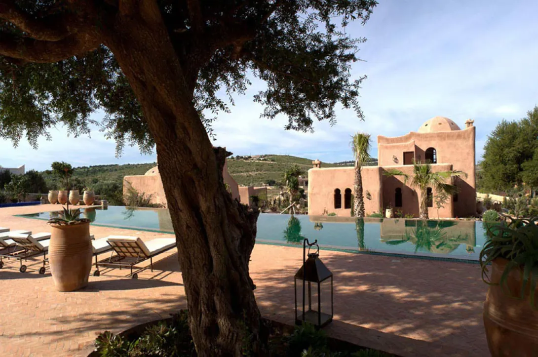 Nas colinas de Essaouira, ao abrigo dos ventos e num sumptuoso décor natural formado há milénios pelo Oued (rio) Ksob, o Jardin des Douars é um magnífico Ksar (palácio) dedicado aos amantes da natureza, da autenticidade e da gentileza.é uma maison d'hôtes e de charme de formas voluptuosas, construído no respeito das tradições e dos materiais marroquinos, que mistura ao requinte subtil da sua decoração e à exuberância do seu jardim, uma verdadeira descontração e simplicidade. Um raro luxo apreciado por um público esteta em busca de paz e de prazeres simples, a dois ou em família.é um lugar onde se pode passear no jardim ou nos cantos e recantos da casa, ser massajado e mimado sob a abóbada do hammam, degustar uma deliciosa cozinha, tomar um aperitivo à lareira, apanhar sol à beira de uma das duas piscinas (uma das quais aquecida) ou, num recanto remoto do paradisíaco jardim, apreciar o dolce far niente.é, de facto, um pequeno paraíso onde pode desfrutar de dias de sol, da bela Essaouira, das suas praias e dunas intermináveis, do seu famosos golf de Mogador (36 buracos desenhados por Gary Player), e das sua inúmeras outras actividades (kite-surf, windsurf, moto 4, passeios a cavalo, mountain bike...).Os 24 quartos e suites são todos diferentes e equipados com um enorme duche ou banheira de estilo beldi em taedlakt, de produtos de beleza à base de óleo de argão e de uma espaçosa cama dupla.Ainda, no Jardin des Douars, a cozinha é perfumada, subtil e requintada, mas sem ostentação. De inspiração mediterrânica, apresenta delícias da gastronomia marroquina e internacional.à hora do almoço um amplo terraço acolhe os hóspedes com uma carta, escrita na ardósia, ligeira e equilibrada. O chef propõe pratos diferentes todos os dias: salada aux noix de saint jacques, tartare de salmão, peixe grelhado do dia, brochettes de frando Beldi marinado, pratos de queijos de Meskala, panacotta de frutos da época, fondant au chocolat... Aos domingos a proposta é um barbecue com buffet livre no terraço: saladas variadas, carnes grelhadas de vaca, de borrego ou de frango, acompanhamentos e um grande prato de queijos de Meskala e buffet de sobremesas. à noite, os dois charmosos restaurantes interiores acolhem os comensais: O Ksar, que propõe uma cozinha de inspiração marroquina, em que o menu - diferente a cada dia - é afixado todas as manhãs e oferece, por exemplo, briouates de queijo de cabra, tajine de frango com mel e amêndoas, couscous tfaya, tajine de borrego com figos...; e o Table des Douars, com um décor acolhedor e intimista, onde se propõe uma carta gourmande preparada todos os dias com os produtos frescos dos mercado. De inspiração internacional, mas com uma nota marroquina, sugere raïta de maçã, pepino e camarões picantes, ceviche de atum fresco aux fines herbes, bife com puré de batata com óleo de argão de Sidi Yassine, pavé de salmão com folhas de videira e tagliatelle de cenoura, crumble aromatizado com peras e tâmaras...O Jardin des Douars dispõe ainda de um spa/hammam onde são aplicadas técnicas de massagem e tratamentos respeitando a cultura e as tradições marroquinas.