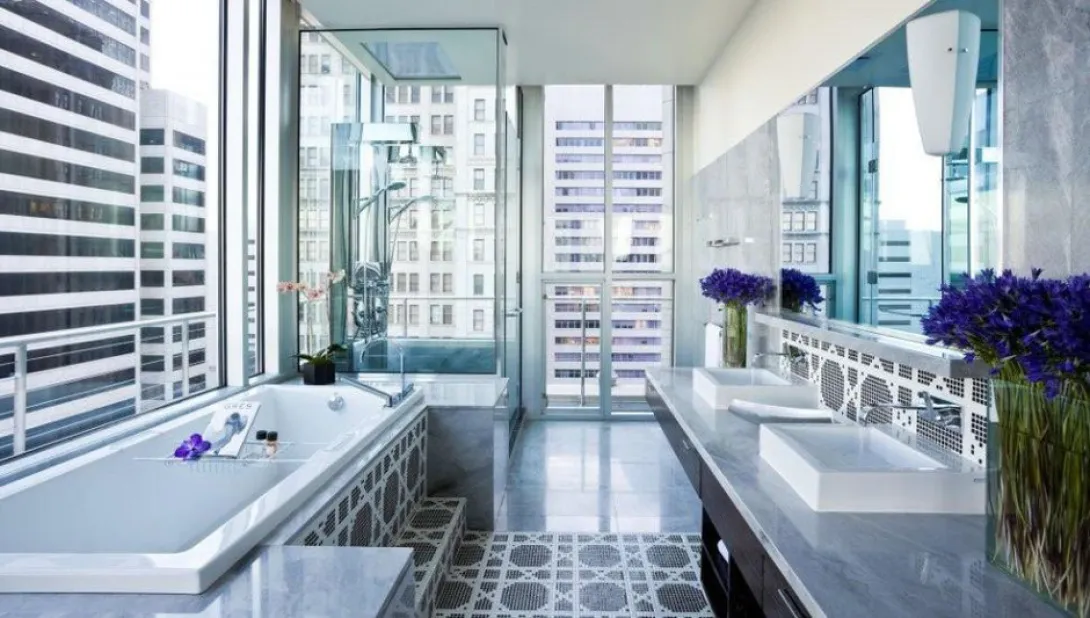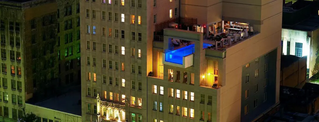 Ali vai sentir-se como se, de repente, estivesse a nadar fora da piscina... A sua piscina aquecida estende-se literalmente 2 metros e meio para fora do hotel, dando aos hóspedes a impressão de que estão a nadar no ar.O The Joule é um elegante e luxuoso hotel de estilo neo-gótico em Dallas, com um design superlativo, boa cozinha, bom vinho, e uma excepcional colecção de arte.Mesmo os viajantes mais cansados ficarão impressionados ao passar no arco gótico do Joule. Este marco dos anos 20 foi renovado em 2007, utilizando desenhos arquitectónicos originais para restaurar completamente a fachada do edifício.Os seus 129 quartos são sofisticados. Se puder e quiser ficar em grande estilo, reserve a Suite Joule, com a sua elegante madeira italiana, cabeceira da cama em marfim e couro, e fotografias de Bram Tihany. Admire o quarto, prepare uma bebida e desça depois para uma refeição no Charlie Palmer. De caminho, confira a colecção de arte do hotel, que inclui obras de Richard Phillips e Andy Warhol.E, se for um amante do vinho, vai adorar a Next Vintage, uma loja de vinhos colocados numa montra com temperatura controlada em aço polido e vidro. E, claro, não deixe de dar um mergulho! Sente vontade de tomar um longo banho fora de um telhado bem curto? Mas encha-se de coragem! A fachada de vidro da piscina do Joule ultrapassa a estrutura do hotel - redefinindo o termo "sair da piscina".