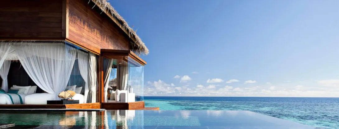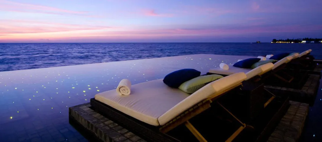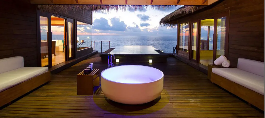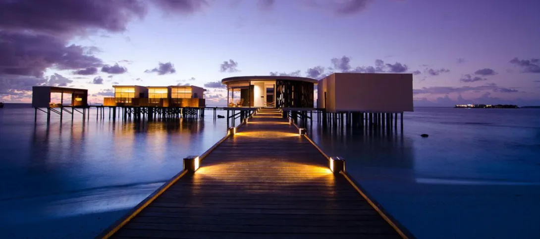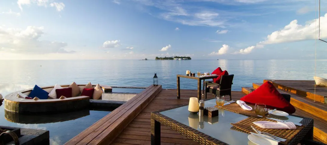 As villas sobre a água não estão localizadas apenas no fim de um pier, mas um quilómetro adentro da lagoa, acessível apenas por barco (ou por algum nadador muito determinado). Têm terraços privados, vista panorâmica para o mar, piscinas infinitas privadas e camas enormes -sem falar nas suites Sanctuary de 340 metros quadrados (quase do tamanho das menores ilhas do arquipélago).Os dias no Jumeirah Dhevanafushi estão repletos de snorkeling, mergulhos, volei, passeios de barco, pesca e yoga, realizada no Spa Talise, com uma infinidade de tratamentos revigorantes.Para as refeições, o resort oferece o Azaza, um famoso spot pelos seus deliciosos bolos do pequeno-almoço; o Mumayaz, para frutos do mar frescos preparados com um toque local e mediterrânico; e o Johara, para deliciosa carne e requintados vinhos. Existe ainda uma opção de refeição de design personalizado, servida em qualquer lugar (e de qualquer maneira) à medida dos hóspedes.