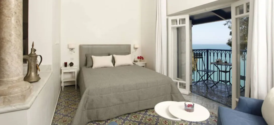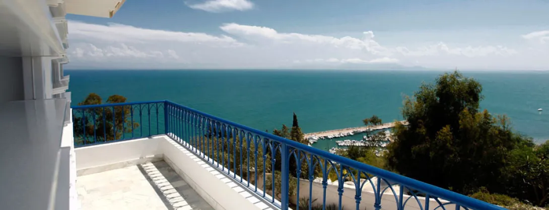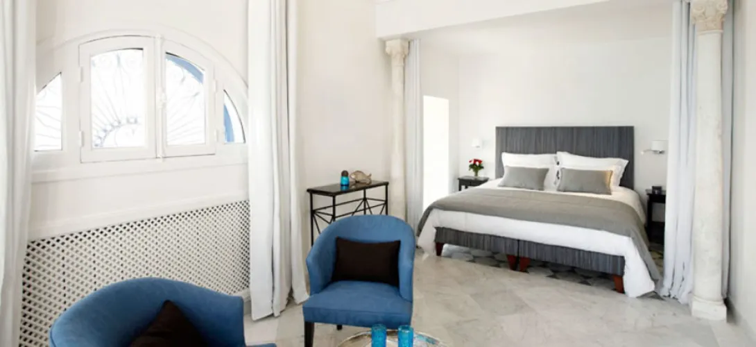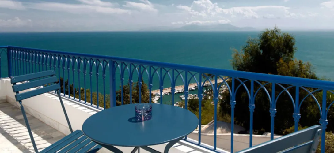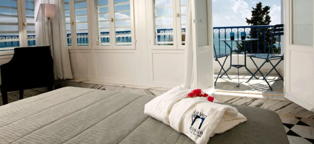 Ocupando uma localização invejável numa falésia de Sidi Bou Said, La Villa Bleue é um hotel de 5 estrelas com apenas 13 quartos que oferece vistas deslumbrantes sobre o Golfo de Tunis e pertíssimo do labirinto azul e branco deste paraíso de ruas de paralelepípedos com os seus típicos cafés e restaurantes.Os hóspedes do La Villa Bleue podem passar o dia descansando numa das duas piscinas do hotel, sob o sol do Mediterrâneo, e admirar as espectaculares vistas. O spa do hotel, com o seu hammam e sala de massagens, é o cenário perfeito para descontrair e relaxar. Quando a noite chega, os hóspedes são convidados a jantar no óptimo restaurante do hotel, onde chef Jean François Issautier, com duas estrelas Michelin, cria pratos gourmet com as especiarias tradicionais tunisinas.Recentemente renovado, o La Villa Bleue é uma antiga e encantadora villa de arquitectura local, com requintados interiores. Todos os quartoa apresentam uma decoração árabe-andaluz e dispõem de varanda privada para admirar as vistas deslumbrantes sobre o azul do Mediterrâneo.