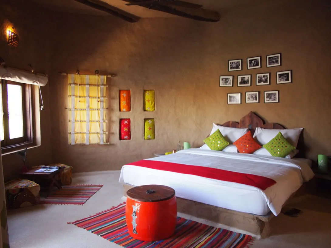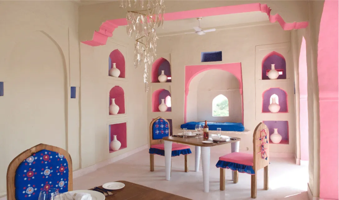 Lakshaman Sagar foi originalmente construído no século XIX como pavilhão de caça: Hoje está convertido num refúgio de luxo instalado em 13 hectares de terra em Pali, perto de Jodhpur. Os edifícios originais (Zenana, ala das mulheres, e Mardana, a homens) foram espectacularmente restaurados e sentam-se frente a frente numa antiga represa, cercados por uma paisagem desértica, sonhadora, que se estende pelos montes distantes.Espalhadas em redor do lago estão 12 casas, habilmente construídas, locais, rústicas, combinando-se de forma brilhante. Chamadas de "shikar ghars", estão decoradas com móveis feitos à medida, tecidos de origem local, candeeiros reciclados e piscinas privadas com vista para o lago. Ali tudo é étnico: as camas, as almofadas de tecidos fortes, vibrantes, as casas de banho com paredes de pedra e chuveiros imensos...Há potes de biscoitos caseiros na sala de estar e colecções ecléticas das típicas caixas de refeições indianas em aço batido, sapatos Rajput bordados e tigelas cheias de pulseiras em cada nicho esculpido.As noites de inverno são aquecidas por lareiras e grandes janelas francesas abrem-se para jardins privados e piscinas recortadas na rocha.A cozinha tradicional Rajasthani, feita a partir de produtos orgânicos sazonais locais, é servida nos arrozais, em redor da fogueira ou no lago. A enorme piscina é esculpida na rocha, e oferece vistas panorâmicas da paisagem envolvente. Não deixe de fazer passeios pela região e pelos bazares da aldeia - eles dar-lhe-ão um vislumbre da vida tradicional indiana como poucos turistas alguma vez a viram.