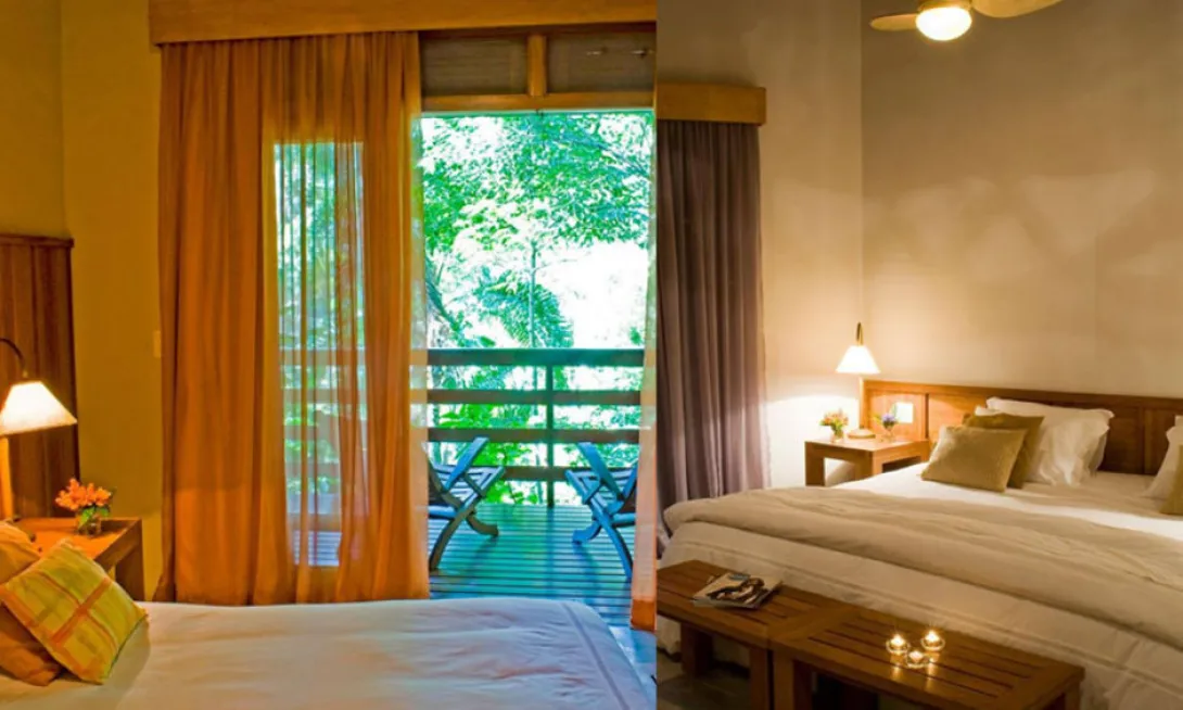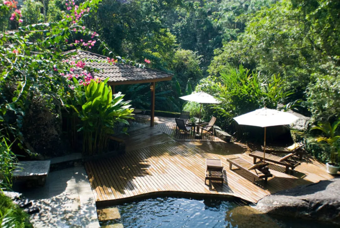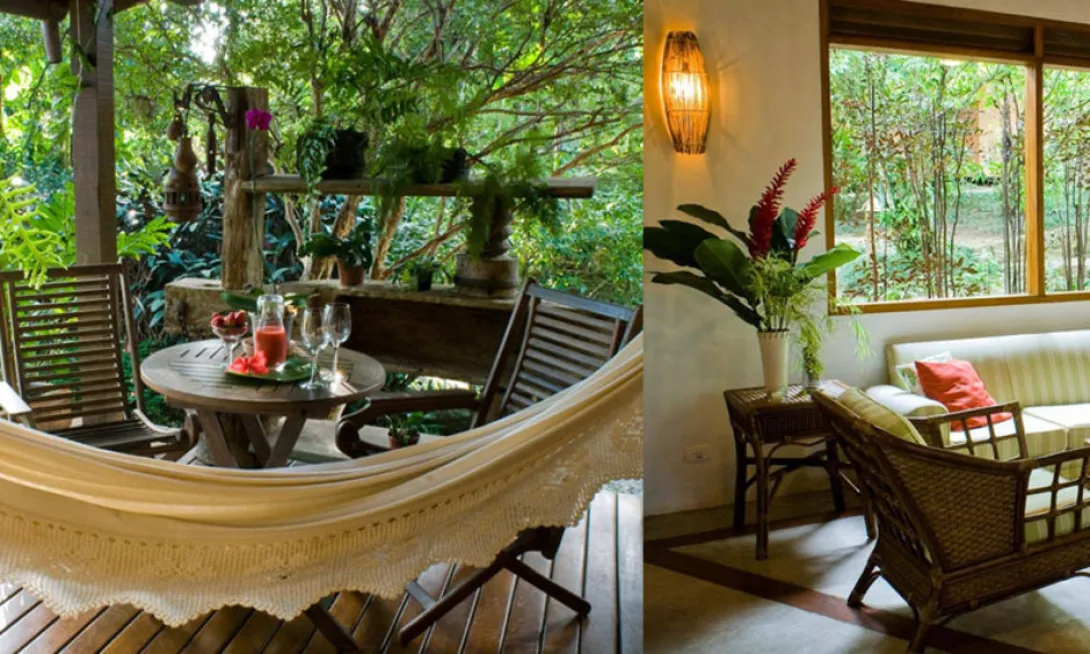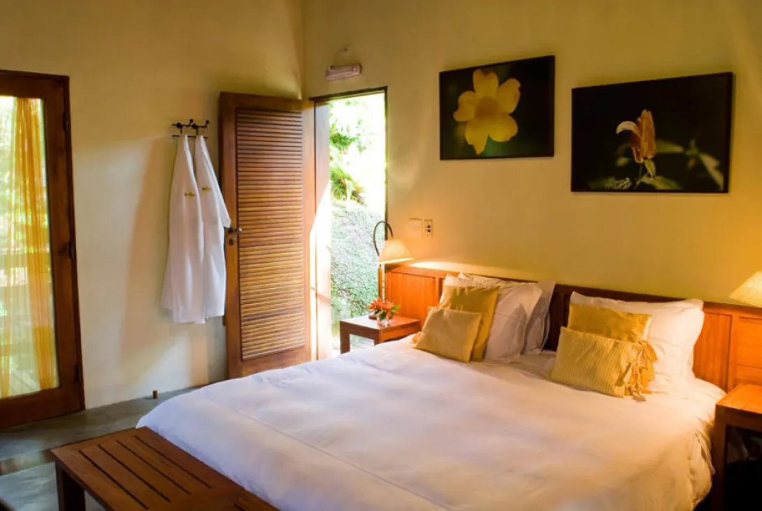 A L'Eden Pousada Boutique fica junto ao rio da Toca, num vale a dois quilómetros da costa...Com um projecto arquitectónico ímpar, que privilegia a exuberância da Mata Atlântica, a privacidade e o bem-estar dos hóspedes, L'Eden é um local perfeito para casais.Tem apenas 7 quartos harmoniosamente integrados na estrutura da pousada, que inclui ainda uma pequena piscina, sauna seca, sala de estar e sala de pequenos-almoços.água, Fogo, Metal, Terra, Ar, íris e Primavera: estes são os 7 quartos do L"Eden, amplos, com varandas e muitos cuidados especiais, como travesseiros e edredons de plumas de ganso, roupas de cama de algodão egípcio, colchões de mola pillow top, amenities L"Occitane... A Fogo tem ainda lareira e a água banheira de hidromassagem.Em plena mata Atlântica, a pousada oferece uma excelente integração na natureza.