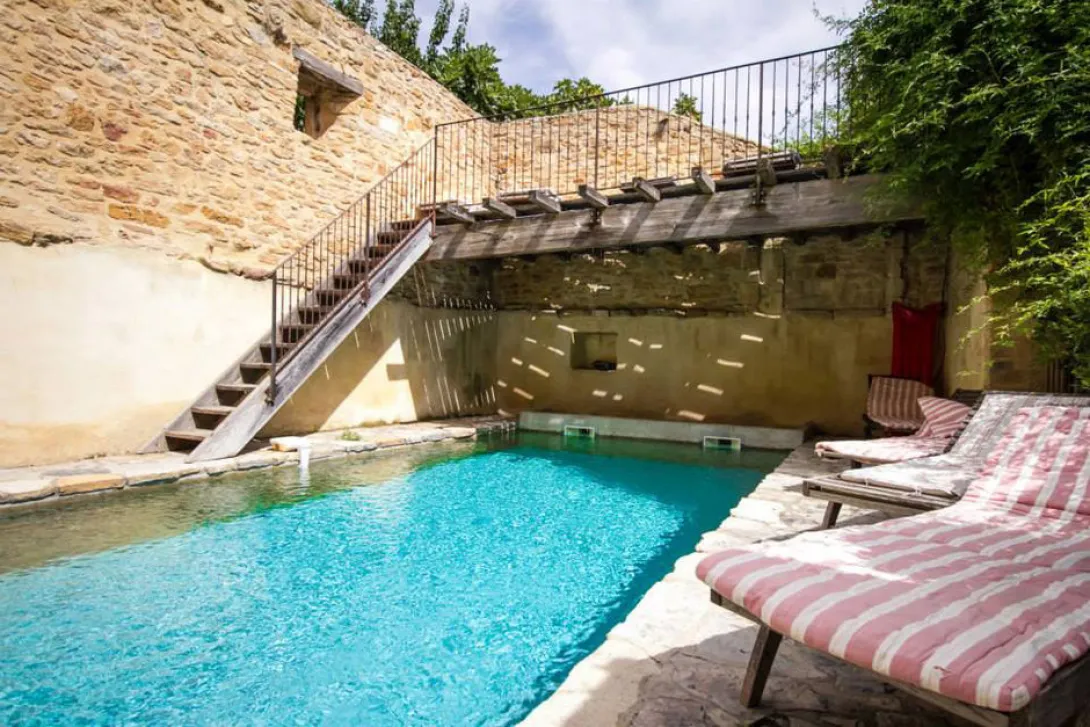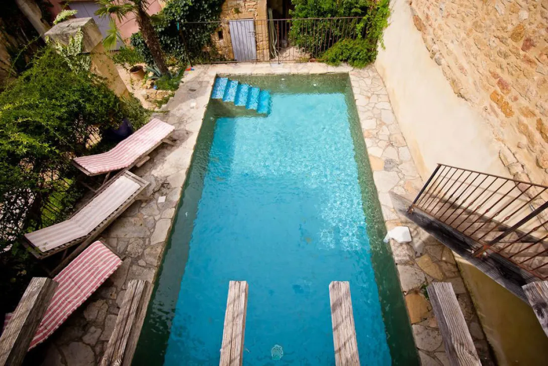 é um belíssimo lugar com uma piscina no pátio, instalado numa pacata aldeia perto da magnífica Uzès...Quem procura um lugar chique para relaxar nesta bonita paisagem vai encontrá-lo aqui. Anna Karin e Olivier (respectivamente modelo e fotógrafo) fugiram de Paris em 2000 e criaram uma casa excepcionalmente acolhedora que funciona como um B e B. Fica num pequeno vilarejo que remonta ao século XII, tem 5 quartos e 3 apartamentos, uma piscina no pátio e paredes de reminiscência medieval.Os interiores incluem cores bonitas, uma magnífica escadaria de pedra e uma decoração contemporânea que assume o velho estilo francês do país. As lareiras rugem soltando um aroma suave a lenha queimada e calor, uma das quais está sempre acesa durante o pequeno-almoço, no inverno; as videiras dão sombra ao pátio, onde se podem saborear deliciosos croissants no verão. Apesar do desejo de ficar no seu quarto ou apartamento, lembre-se que Uzès, Nîmes e Pont du Gard estão muito perto; e porque não tirar um dia para explorar o norte, também deliciosamente bonito e um pouco negligenciado nas agendas turísticas: Mont Bouquet, a aldeia de Lussan e o magnífico Gorge de l'Ardèche, esperam por si.