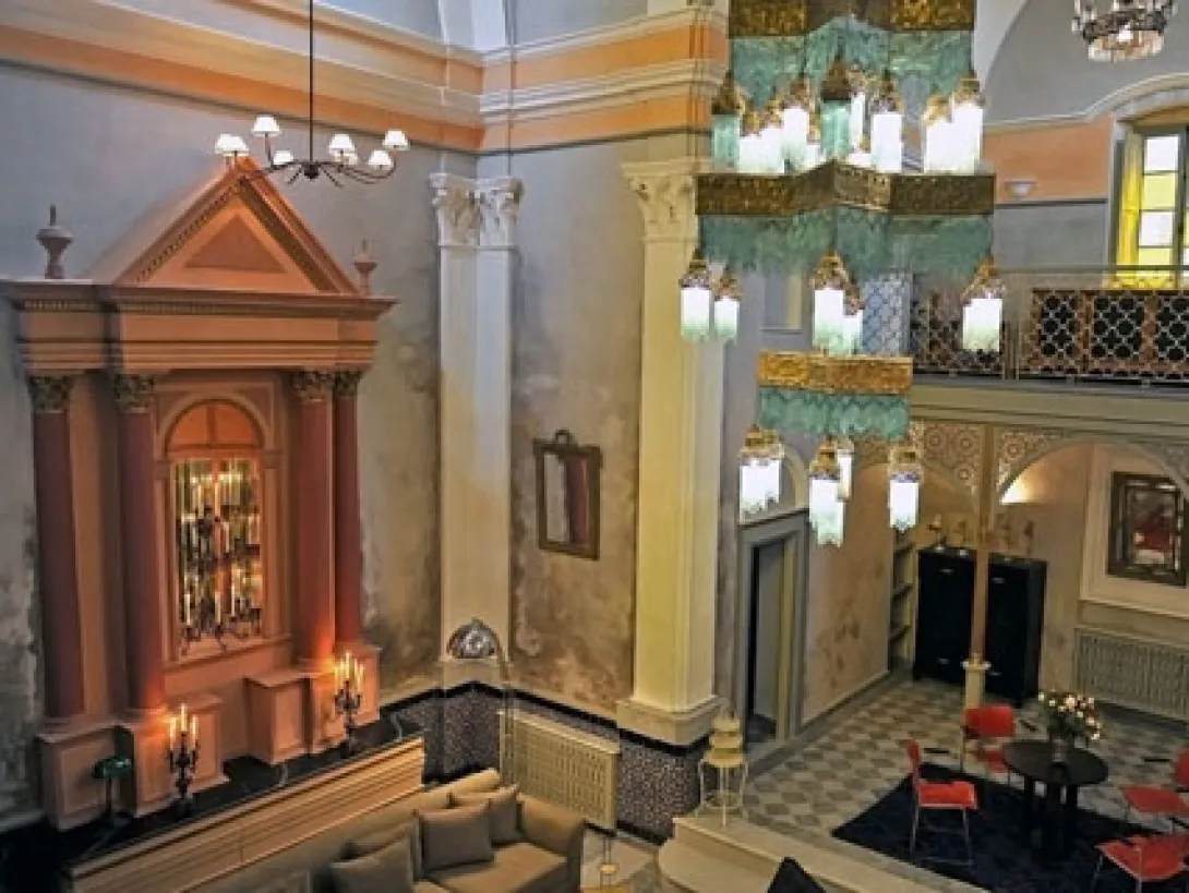 No século XVI os portugueses edificaram em Mazagão, porto conhecido dos europeus desde o início da era cristã, uma cidade fortificada cercada por espessos muros. Dois séculos mais tarde, Mazagão, libertada, passa a chamar-se El Jadida "A Nova", hoje classificada pela Unesco como Património Cultural Imaterial da Humanidade.No coração da antiga cidade, L'Iglesia é uma igreja espanhola do século XIX reconvertida em hotel de charme, que ocupa agora a antiga igreja de Santo António de Pádua, com uma área de mil metros quadrados na cidadela portuguesa. Uma ala separada da propriedade situa-se no antigo consulado dos EUA, que data do período da ocupação portuguesa, quando era a Casa da Capitania.Dormir em uma das suites do convento redecorado ao estilo anos 30, tomar o pequeno-almoço com a praia no horizonte, descobrir os salões da nave da igreja, almoçar ao pé das muralhas e jantar no antigo salão do cônsul... história da ilha, lugar invulgar e intimista, o Iglesia encarna o espírito da viagem moderna.O hotel oferece 13 quartos, cada um decorada de forma particular, com móveis e objectos recolhidos nos antiquários de Marrocos. Oito das suites ficam no interior do convento, e as restantes cinco na antiga Casa da Capitania.Os promotores, Jean Dominique Leymarie e os seus filhos, proprietários também do Beldi Country Club de Marrakech, quiseram criar um lugar afastado dos esquemas clássicos.Encostado às muralhas, o restaurante do hotel ocupa o outrora salão do consul, oferecendo uma cozinha de sabores orientais com ênfase nos produtos frescos, sobretudo no peixe local, e saboreada sobre as palmeiras e as oliveiras. No terraço do claustro, com uma espectacular vista sobre o oceano, o porto, a cidade e a praia, o bar abre todos os dias às 7 da noite.Decorado com colecções de lustres, espelhos, chapéus, relógios e rádios antigos, os salões do L"Eglise permitem saborear um cocktail ou um copo de vinho, desfrutar da biblioteca ou do salão de jogos... e em todo o hotel está disponível gratuitamente internet wi-fi.Perto da torre, o terraço do hotel tem a cidadela por horizonte e, no terraço do claustro, onde a costa marroquina se oferece à vista, uma antiga banheira permite tomar um banho de 360.º! O hotel dispõe ainda de um salão de massagem tradicional onde os benefícios e os segredos do óleo de argão são revelados.O L"Iglesia organiza ainda visitas guiadas aos souks, à cidade e aos seus arredores.