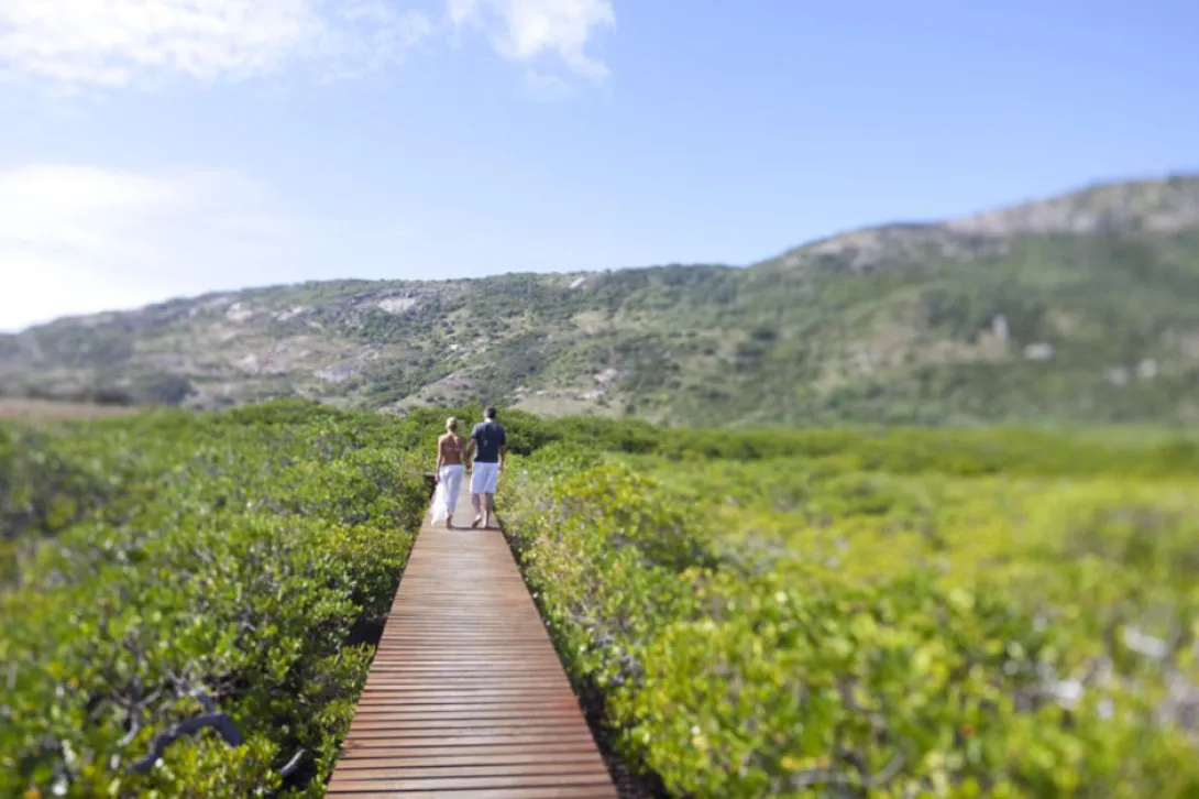 No ponto mais a norte do célebre Great Barrier Reef, a ilha de Lizard não poderia ser mais remota! Escarpadas e rochosas montanhas rodeiam um mar azul com 24 praias de areia branca e impoluta. O resort dispõe de 40 villas privadas, quartos e suites, com excelentes opções de mergulho, pesca e snorkeling. Perfeito para aventureiros, amantes do mar ou apenas casais românticos em busca do paraíso na terra...De facto, Lizard Island é único e inesquecível, um lugar onde apetece passar o dia dentro de água, mergulhando entre os brilhantes recifes de coral que rodeiam a ilha. Mas tem tantas outras coisas para fazer e desfrutar: como um Cooling Hot Stone Body-Facial no Spa Azure; ou um passeio até - cesta de piquenique na mão - até uma das 24 praias de areia branca da região...Ou, simplesmente, deixar-se ficar na sua cadeira de madeira tipicamente australiana e observar a vista de 270.º graus sobre a Great Barrier Reef desde o seu Pavilion, umas das 40 modernas villas de Lizard Island. Todas oferecem acesso à praia e um design open-plan, quase todas com a sua piscina privada (com vista soberba também, claro).Na hora de mergulhar outra vez, basta entrar no Fascination III, o barco do resort de 51 pés. O passeio oferece ainda a possibilidade de, no regresso, pescar qualquer coisa - cavalas, black marlins... - para entregar aos chefs, que aguardam os hóspedes no regresso, e preparam o peixe para o jantar!