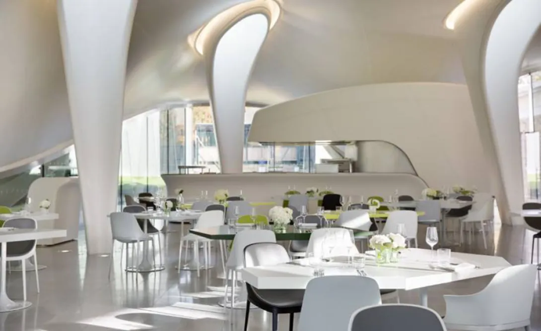 Muita gente já viu edifícios de Zaha Hadid, pelo menos em fotografias. Mas jantar num deles é único e agora possível, desde a recente inauguração do The Magazine, em Londres.Na ondulante extensão de Hadid da clássica estrutura que abriga o novo Serpentine Sackler Gallery, o The Magazine é banhado em luz pelos raios penetrantes do telhado ondulado e das ondas de vidro que dão para jardins projectados por Arabella Lenox-Boyd.O mobiliário é simples e contemporâneo por forma a não ofuscar o edifício - ou o menu de Oliver Lange, que treinou sob o comando de Kazu Hashimoto, do Nobu.Lange utiliza peixes frescos locais (e um corte ímpar de carne) em pratos de terminação "japonesa", como camarões Dublin Bay, baby pak choi e bolinhos de milho, ou enguia de água doce grelhada com terrine de fígado de pato...West Carriage Drive, Kensington Gardens