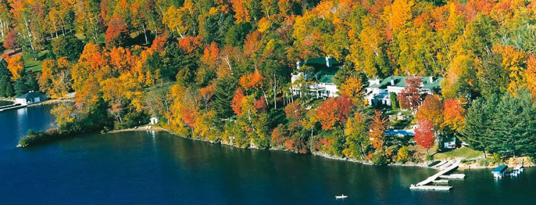 Escondido a leste de Quebec, Manoir Hovey é uma composição romântica de esplendor à beira do lago e pitoresco isolamento sem pretensão... Construído há cem anos no estilo de plantação de George Washington, em Mount Vernon, os seus dois carrinhos de queijos da sala de jantar são merecidamente famosos, tal como a senhora que toca todas as noites o piano de cauda, à entrada do restaurante.Em algum momento durante a sua estadia no Manoir Hovey - um luxuoso 5 estrelas membro da Relais e Châteaux - deve experimentar a força de um remo de madeira apoiado contra a lateral de uma canoa, entrando na água fria e clara do Lago Massawippi e criando pequenos redemoinhos. E, uma vez que a canoa serve para relaxar, dê-se um momento para apreciar as paredes caiadas de branco desta residência, em tempos privada. é realmente canadiana sem uma pitada de kitsch.O Lago Massawippi, onde fica o Manoir Hovey, é tão viçoso quanto qualquer coisa do lado americano dos Apalaches e este clássico alojamento rural é tão requintado que beira o aristocrático.Instalados num lago privado, os 37 quartos e suites do Manoir Hovey variam de singulares a presidenciais, com detalhes como mármore italiano, chão de tábuas largas, banheiras de hidromassagem, e em alguns casos, camas de dossel. Actividades ao ar livre não faltam mas, sem dúvida, uma das mais gratificantes actividades em Monoir Hovey será jantar. A adega de vinhos é excelente e não se esqueça de deixar espaço para o célebre carrinho de queijos que tem a fama de ser o maior de toda a província e abastecido com queijos de leite cru de artesãos locais.Vale a pena pensar em ficar ali também no Inverno, quando skis e trenós puxados por cães substituem o jogo de ténis e as canoas.