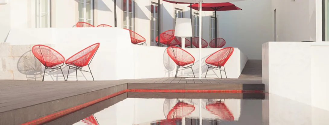Rodrigo Machaz concebeu outro design hotel, desta vez no coração de um dos mais típicos bairros de Lisboa, o romântico bairro de Alfama.Embora rodeado de história, o hotel transmite uma sensação super-contemporânea: do mural exterior concebido pelo artista conceitual Vhils (Alexandre Farto) ao design minimalista do arquitecto Samuel Torres de Carvalho, que preservou fachadas originais e acrescentou uma piscina e um deck com vista para o rio. Os 42 quartos têm vista para o bairro ou para o Tejo e oferece ainda um wine bar bem abastecido e lanches gourmet.Travessa das Merceeiras 2