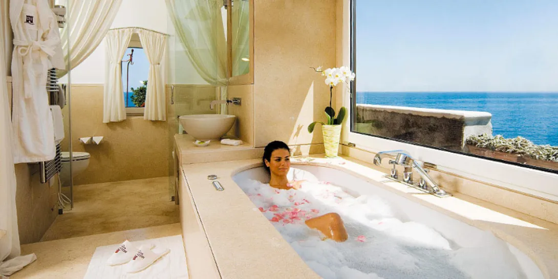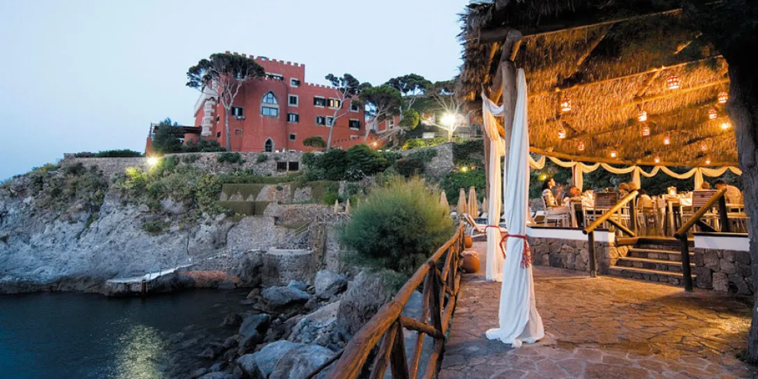 Debruçado sobre um promontório com vista para o mar, oMezzatorre Resort e Spaé um hotel de 5 estrelas situado na costa oeste da ilha italiana de Ischia.Rodeado por vinhas e um pinhal com sete hectares, o resort desfruta de uma mais belas e intactas zonas da ilha. Esta espectacular ilha fica apenas a 29 quilómetros do caótico porto marítimo de Nápoles, e a uma curta viagem de barco saindo de Capri. O hotel foi construído em redor de uma antiga torre de observação do século XVI, na costa noroeste da ilha; um lugar estratégico, já que possui a esplêndida calma da baía de San Montano e do mar Tirreno. Os quartos mais autênticos e acolhedores encontram-se na antiga torre de observação. Vistas melhores e mais espaço podem ser encontrados nos outros edifícios.A maioria dos 59 quartos (e todas as suites) possui varandas, ou pelo menos janelas com espetaculares vistas para o mar. O Mezzotorre não é, de facto, o local mais indicado para aqueles que sofrem de falta de concentração, apesar de que a beleza da paisagem e a comodidade do hotel (principalmente o SPA) devem ser o bastante para acalmar os hóspedes mais agitados.Os restaurantes são excelentes, o SPA é de primeira, e o pinhal nos arredores do hotel convidam a um passeio. Para fazer compras... só saindo do lugar, e de barco (o hotel disponibiliza transfer gratuito disponível do resort e para o resort, para o centro da vila e para a praia próxima). Mas, após um dia no tráfego intenso e na aglomeração de pessoas em Nápoles, passará a valorizar mais a tranquilidade de Ischia. Os amantes da arqueologia poderão contemplar a vista do Vesúvio, e os cinéfilos sentir-se-ão atraídos pela proximidade de La Colombaia, antiga propriedade do director Luchino Visconti.