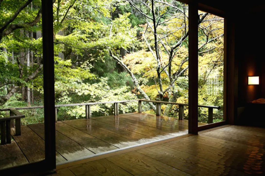 No alto das enevoadas florestas de cedro, os seus baixos edifícios de madeira já serviram alojamentos para o templo budista ali próximo - aliás o actual único vizinho é um monge xintoísta instalado no final de um longo caminho montanha adentro.A uma hora de carro da cidade, tem apenas quatro quartos com vista para um borbulhante riacho de montanha e o cenário de musgo verde. Esqueça as modernas tecnologias: no momento em que o mordomo (English-speaking) recebe os hóspedes na porta de madeira baixa, são imediatamente imersos na hospitalidade e nos costumes japoneses. Os sapatos são eliminados, é oferecido um chá de magnólia e doces, e explicada a etiqueta, tal como o agradável hábito de tomar vários banhos bem quentes na banheira comum em madeira de cipreste e com vista para o plácido cenário lá fora. Depois, e uma vez limpo e enrolado num yukata de algodão (um leve quimono), pode ficar no seu quarto com apenas um tradicional tatami enrolado. Televisão ou wi-fi não existem. Apenas uma estética muito zen.Um requintado kaiseki duas estrelas Michelin espera pelos hóspedes para as refeições. Sublimes aliás. O roçar do quimono do assistente e a tela da porta vão anunciando a chegada de cada jóia gastronómica: delicados bolinhos de rebentos de bambu cozidos em sal, sashimi de carpa, camarões de água doce grelhados...