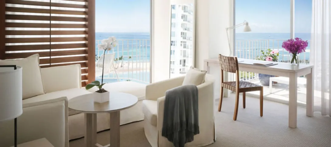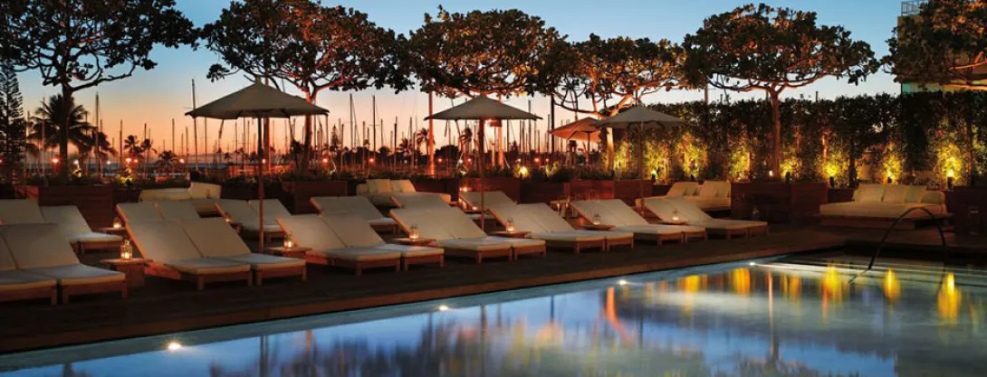 Cada elemento aqui é original, autêntico ou custom-designed para melhorar a experiência dos hóspedes. Da escultura de pranchas de surf quebradas por trás do balcão do lobby, ao bar escondido atrás de uma estante giratória ou as telhas em vidro azul embelezando a Sunset Pool, o clima no The Modern Honolulu é realmente contemporâneo e sofisticado.O design do hotel (que se estende a cada um dos 353 quartos e suites) é um estudo em branco, minimal, elegante, que amplia as vistas deslumbrantes sobre o horizonte do Oceano Pacífico, o skyline de Waikiki e os exuberantes jardins do hotel.Os tratamentos estimulantes do spa são desenvolvidos com base nos produtos mais puros e exclusivos do mundo: naturais, orgânicos, sustentáveis e artesanais.O The Modern Honolulu oferece ainda algumas das melhores iguarias gastronómicas da cidade, sob o olhar astuto do especialista e chef Masaharu Morimoto no Morimoto Waikiki. Em conclusão, o The Modern Honolulu é um entre apenas alguns hotéis que combinam estilo continental e esplendor havaiano.