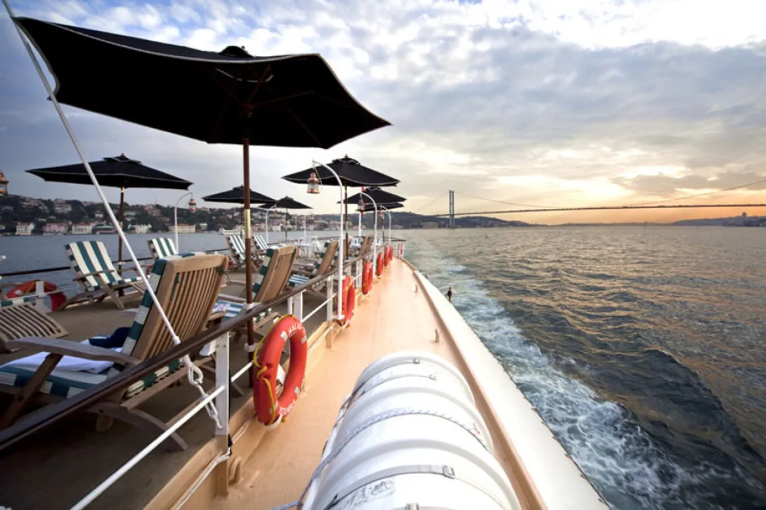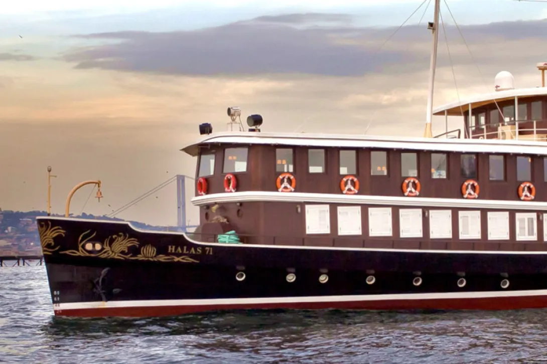 M/Y Halas 71, TurquiaHalas 71 foi construído em 1914 pela Fairfield Shipping Co., em Glasgow, originalmente como um ferry de passageiros.Foi reformado pela primeira vez em 1984 como um iate a motor, e de novo em 2009 quando voltou a mudar de mãos. Está disponível no Verão para private charters para cruzeiros de lazer nas águas azul-turquesa das costas sul e oeste da Turquia e, no Inverno, como um hotel boutique e para eventos especiais e passeios do Bósforo.Originalmente chamado de M / Y Reshid Pasha, o Halas 71 tem uma longa e rica história que corre em paralelo com os últimos anos do império Otomano e a fundação da República Turca.Comprado em Março de 1914 pelo Governo Otomano, por razões estratégicas relacionadas com a Guerra Mundial em curso, o governo britânico recusou-se a permitir a sua entrega e, em Novembro do mesmo ano, ficou com ele e mudou-lhe o nome para M/Y Water Witch.Foi utilizado para transporte de carvão e, mais tarde, como um navio caça-minas. Apenas após a assinatura do Armistício de Montreux, em 1918, no final da Primeira Guerra Mundial chegou a águas turcas. No entanto, nos primeiros quatro anos na Turquia, durante a ocupação aliada após a Primeira Grande Guerra, foi usado pelos aliados britânicos.Em Outubro de 1923 foi finalmente entregue ao Governo da recém-criada República da Turquia e o seu nome oficialmente mudado para Halas, que significa libertação.O Halas foi usado como um ferry no Bósforo durante 65 anos e era muito popular entre as crianças, especialmente durante as férias de verão, quando era o seu barco favorito de piqueniques.O Halas acomoda até 24 hóspedes em absoluto conforto. Tem 1 suite principal, 2 junior suites, 3 cabinas executivas, 3 cabinas superiores e 4 cabinas deluxe. Todos as cabinas estão decoradas com belos tecidos e os luxuosos lençóis e toalhas Haremlique.Dispõe ainda de uma sala de jantar interior com capacidade para até 60 pessoas e de um espaçoso salão com painéis de madeira, latões reluzentes em redor do seu bar e uma escadaria entre as plataformas, bem como uma confortável sala de estar com uma área de televisão. Para quem procura um momento de silêncio existe ainda uma boa biblioteca do outro lado.O deck superior dispõe de uma ampla área de solário com uma secção ao ar livre coberta para jantar e que pode acomodar até 42 pessoas.De Outubro até ao final de Maio, o Halas 71 funciona como um boutique hotel no seu cais de amarração, em Istinye (fica na parte europeia de Istambul), para quem procura uma experiência verdadeiramente única.O pequeno-almoço está incluído no preço do quarto, para além da utilização de uma lancha que transporta os hóspedes até ao centro histórico da cidade ou a quaisquer outros locais ao longo do Bósforo.Durante os meses de Verão, o Halas 71 está disponível para charters ao longo do Mediterrâneo e as costas do Mar Egeu da Turquia.