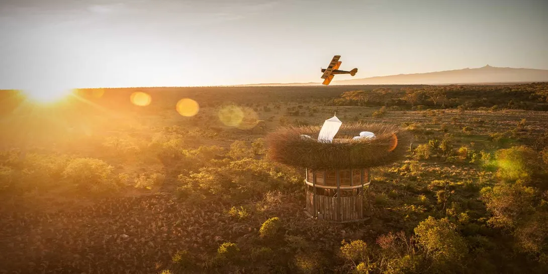 O ninho está iluminado por lanternas, champanhe e delícias culinárias dispostas ao ar livre e convidativas camas (ao ar livre também ou no abrigo do primeiro andar) preparadas com lençóis luxuosos e botijas de água quente, prontas para a noite que aí vem.