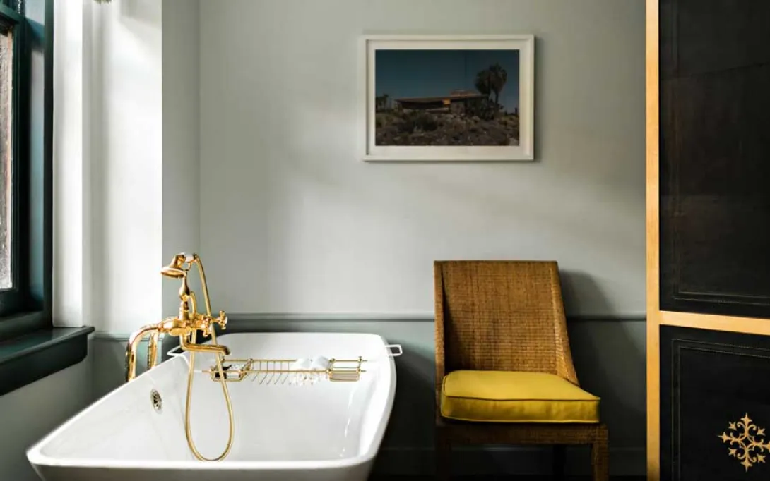 Depois há os quartos, 241, em que o estilo parisiense de Jacques Garcia resulta perfeitamente sob o sol do sul da Califórnia, com móveis únicos, obras de arte originais e produtos de banho personalizados, sublinhando a singularidade do design.