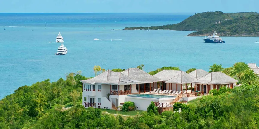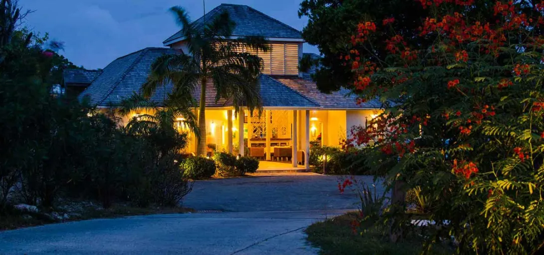 Tectos altos, enormes janelas francesas e varandas envolventes encorajam a vida interior-exterior e aproveitam ao máximo os ventos da ilha, enquanto a moderna paleta de cores brancas é compensada, no exterior, pelos azuis e verdes das Caraíbas.