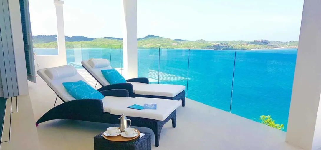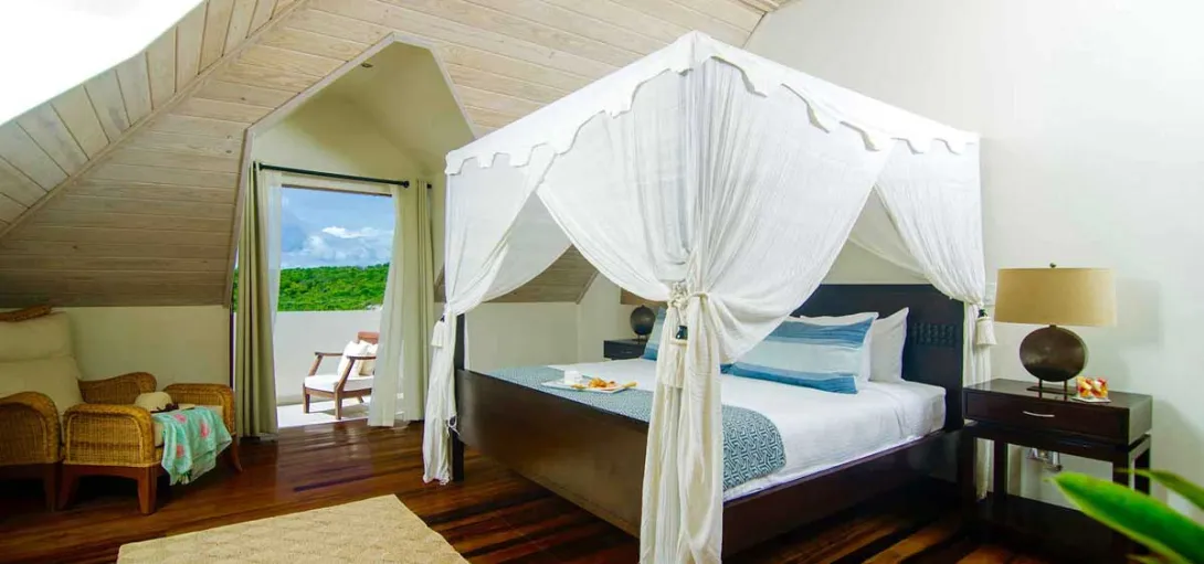 Os apartamentos de um e dois quartos do resort estão instalados em edifícios caiados de branco ao longo da encosta – todos posicionados para contemplar as deslumbrantes vistas da baía. Para além de algumas premium beach front cottages, o resort dispõe ainda de três Luxury Caribbean Villas, disponíveis para quem procura um alojamento luxuoso para uma ocasião especial.