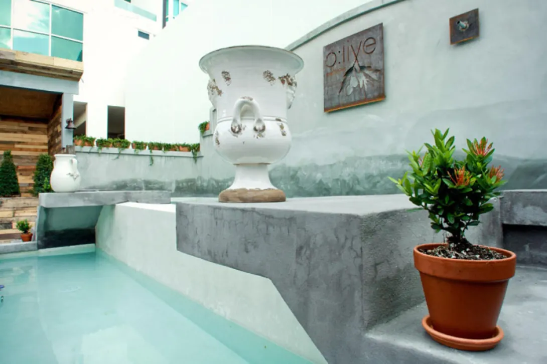 Os hóspedes poderiam pensar estar a acordar na Toscana, não fossem as palmeiras lá fora, em vez das típicas oliveiras. é assim o ambiente deste boutique hotel de inspiração mediterrânica, com apenas 15 quartos e é assim cada detalhe: das pesadas portas de madeira com dobradiças em ferro forjado na entrada do hotel até ao mobiliário de estilo provençal. O tema continua em cada um dos quatro andares dos quartos, que têm fotografias e antiguidades de lugares como Espanha, Itália, Marrocos e França revestindo os corredores.Os quartos - alguns com vista para a lagoa - estão decorados em tons terra e equipados com armários de madeira de estilo antigo e cortinas brancas que parecem fluir no espaço.O restaurante Oliva, com a sua cozinha aberta e um ambiente que dá a sensação de se jantar numa sala de degustação numa cave de vinhos, oferece uma culinária mediterrânica rústica, como pernil de cordeiro com cuscuz ou polvo à galega. Tm ainda um clube, no último andar (exclusivo para membros), que oferece a oportunidade de conviver com a gente local, e embora as "armadilhas" mediterrânicas estejam por todo o lado, a brisa e a vista do cenário lá fora - que se estende desde a cidade até à lagoa e ao Atlântico - são puramente caribenhas. Pode ainda tomar um chá no pitoresco jardim do rés-do-chão.