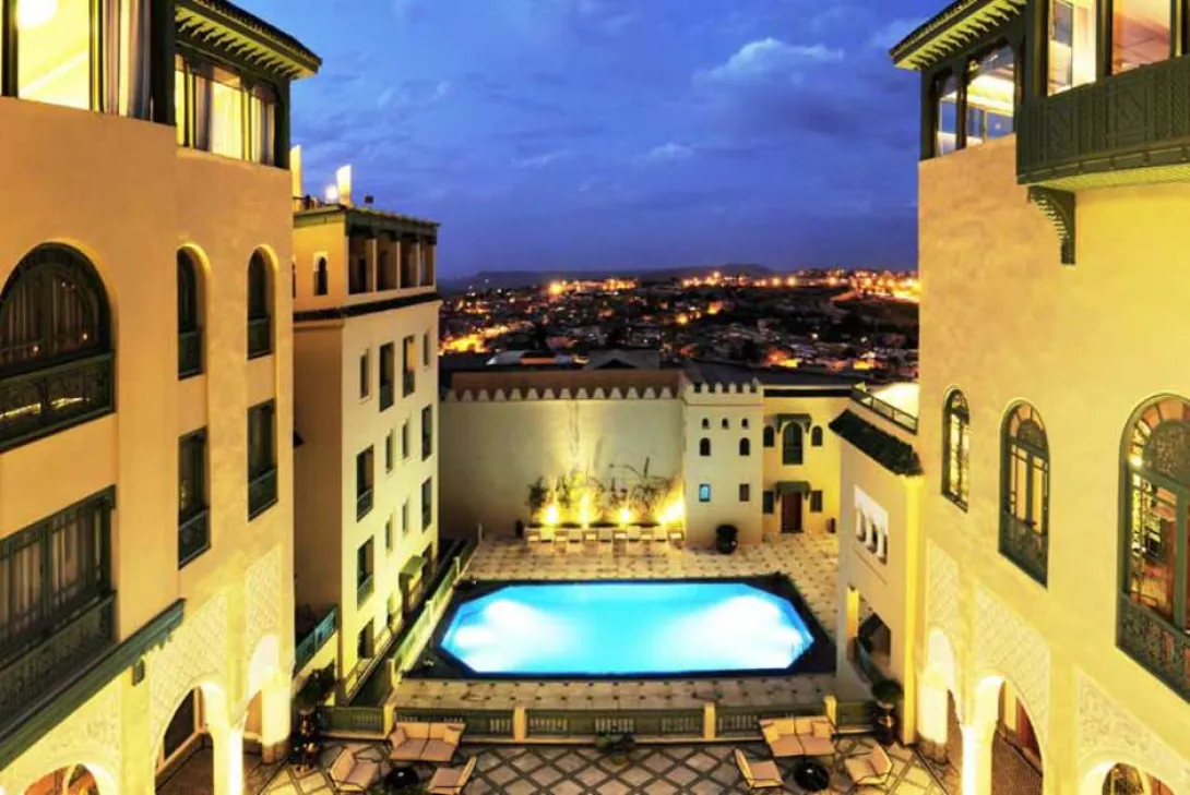 Para lá das palavras e como que por magia, a medina de Fez vive ao ritmo de há mil anos, como se os séculos não a controlassem ou como se as suas paredes altas tivessem o poder de parar o tempo...Fiel à sua história e aos seus costumes, à riqueza da sua arte, aos seus homens, Fez, cidade imperial, ostenta graciosamente o seu título de Património Universal da Humanidade. E orgulhosa de ter sido, durante séculos, um centro de pensamento e de ciência que inspirou tantos e tão grandes homens como Averróis, Maïmonide, Ibn Khaldoun ouLeão o Africano.Majestosamente instalado na colina sul, com uma vista deslumbrante sobre a Medina, o Palais Faraj Suites e Spa convida-o a viver Fez com requinte e conforto.Numa harmoniosa mistura de requinte e autenticidade, Palais Faraj é também uma jóia arquitectónica de rara beleza, desenhada pelo famoso arquitecto e designer de interiores Jean Baptiste Barian, especialista em arquitectura andaluz árabe. Arcos, colunas e moucharabiehs, madeira e gesso esculpido, esculturas em bronze e latão, rendas de estuque branco, chão em mármore e Zellij nas paredes, numa geometria sagrada. Expressões silenciosas de materiais nobres de uma arte onde a perfeição nos detalhes é reforçada na busca constante de harmonia e inspiração. Cada uma das 25 suites do Palais Faraj foi concebida de acordo com esta arte com origens ancestrais e de secreta alquimia, e equipadas com as mais recentes inovações no mundo de conforto, como wifi gratuito em todo o hotel ou chão climatizado nas casas de banho.O hotel oferece também dois restaurantes, o La Terrasse, mediterrânico, e o L"Amandier, com uma vista soberba sobre a medina e uma cozinha rica em sabores no respeito pela tradição gastronómica fassie.
