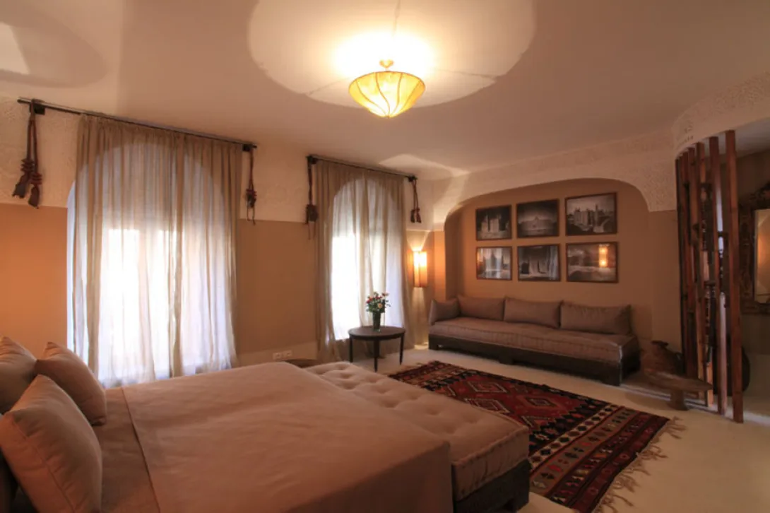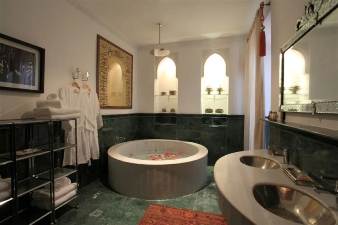 Antigo foundouk Tzougarine, está idealmente localizado em Dar El Bacha, considerada uma das mais fascinantes ruas do centro da antiga cidade de Marrakech.Dar El Bacha, cujo nome tem origem no temido senhor de Marrakech, Tahmi el Glaoui, residência histórica de convidados ilustres como Roosevelt ou Churchill, conduz os visitantes por pequenas lojas de artesanato locais e alguns dos mais importantes antiquários centrais para então chegar ao souks caóticos, onde artesãos e clientes regateiam os melhores preços.Foundouks eram antigas hospedarias, com estábulos para os cavalos no piso térreo e, no primeiro andar, as acomodações e as salas de descanso, em quartos partilhados, destinados a acolher os viajantes exaustos que paravam em Marrakech.Restaurado no respeito às tradições locais, Palais Khum é uma viagem arquitectónica que resume as influências históricas de todas as culturas que ali passaram, e retomando a "tradição" de uma hospitalidade 360 graus, que vai do hotel, ao restaurante, às áreas de bem-estar, aos vários jardins, salas, pequenos e grandes terraços e piscina.Onze quartos com temas individuais, dois jardins, um bar de tapas Deco, uma enorme piscina interior, uma biblioteca-relaxamento, uma galeria de arte, vários terraços, dois hammams e salas de massagens, várias áreas de descanso, um café retro e uma padaria na Dar El Bacha, o caminho dos antiquários, o Kremm Café.O menu do Palais Khum é a essência da cozinha mediterrânica combinada com os extraordinários sabores dos ingredientes marroquinos. Depois, através da utilização de produtos locais, o resultado é um equilíbrio perfeito de sabores, oferecidos numa grande variedade de receitas, exclusivamente pensadas para satisfazer qualquer exigência e para aguçar o apetite dos paladares mais refinados.Todas as refeições respeitam a tradição local, evitando a utilização de carnes de porco e dos seus derivados. Um jantar por Palais Khum é uma viagem através de perfumes, sabores e sensações típicas do Mediterrâneo numa fascinante fusão de culturas, inovações e tradições.O Spa do Palais, elegantemente decorado numa perfeita fusão entre o antigo e o moderno, leva-nos a descobrir a arte de um ritual tradicional marroquino, antigo com mais de mil anos. Oferece tratamentos personalizados numa viagem única de perfumes e essências do Oriente; e dois hammams, antigo ritual oriental de beleza e parte inalienável da arte marroquina de viver, com as propriedades benéficas de relaxar os músculos, livrar o corpo de toxinas e limpar a pele, especialmente se associada a uma esfoliação comsabão preto e eucalipto ou um tratamento com hortelã ou argila (ghassoul).
