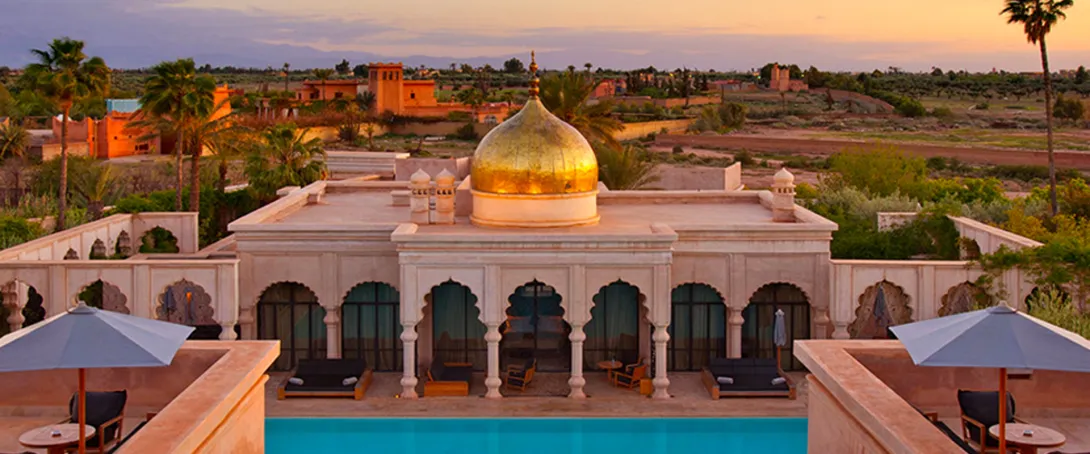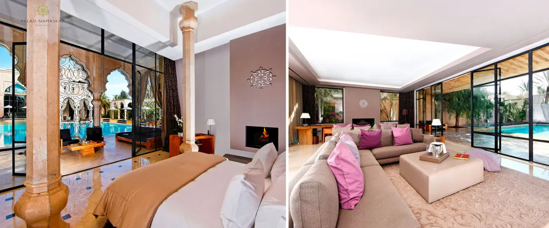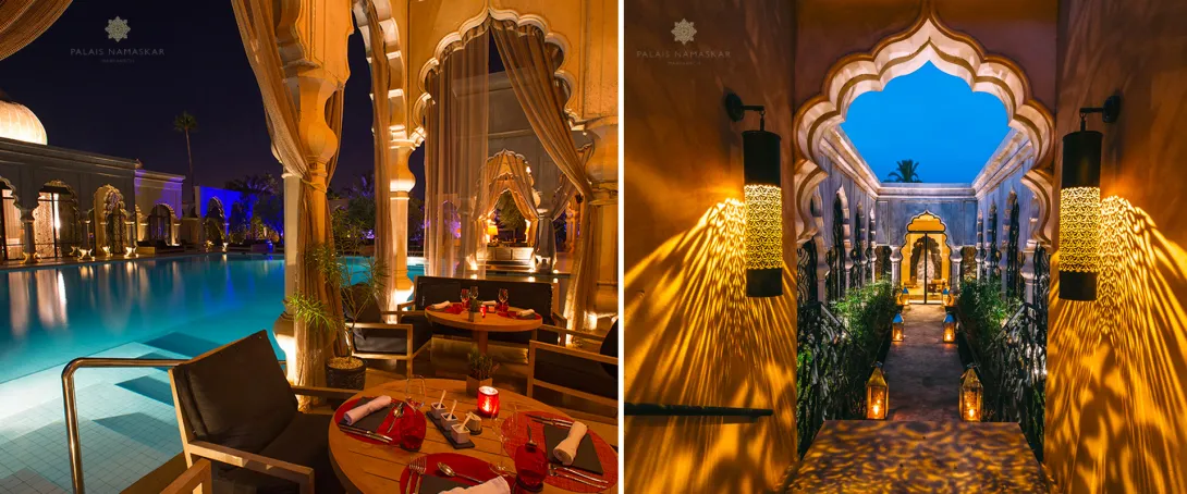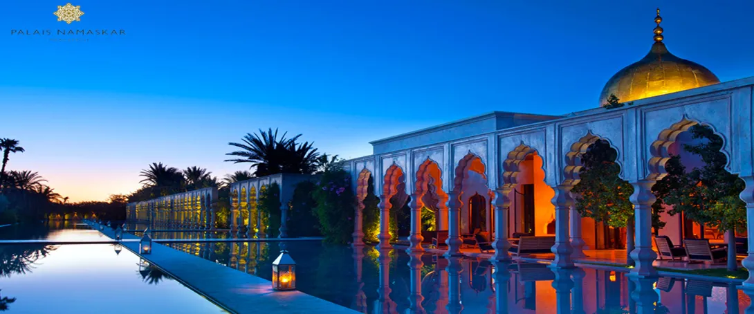 Localizado entre o deserto e a Cordilheira do Atlas, o Palais Namaskar é um luxuoso oásis de serenidade e bem-estar.