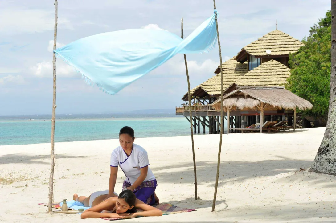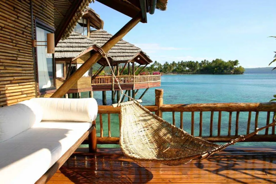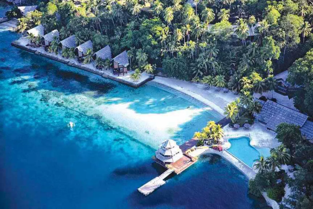 Rodeado por uma abundância de praias, num cenário de beleza natural, as suas suites e villas (algumas construídas em palafitas sobre a água) com varandas oferecem uma vista deslumbrante do horizonte.