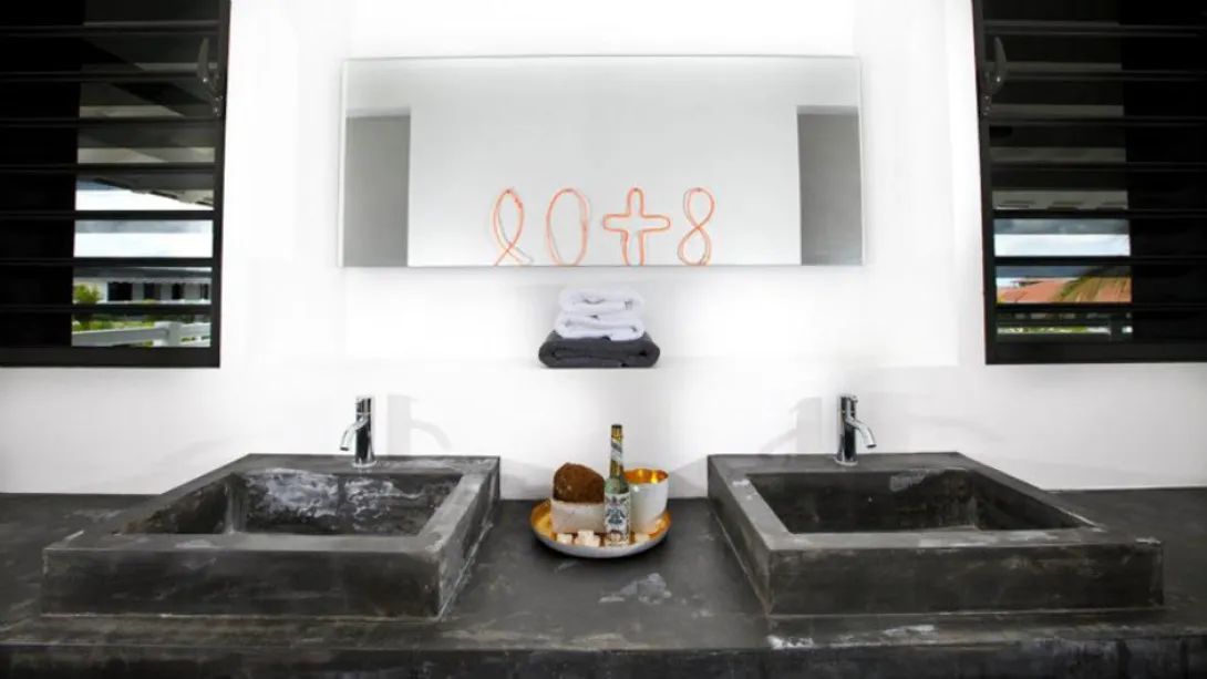 é uma pequena colecção de villas extremamente luxuosas, criado por um dos mestres do design holandês contemporâneo, instaladas na margem de uma pequena ilha das Caraíbas e bem no centro de alguns dos melhores points de mergulho do mundo.O hotel foi feito para um restrito nicho, com toda a certeza, para mergulhadores obcecados por design e que procuram um hotel high end.Piet Boon Bonaire é, de facto, um achado fantasticamente raro. E mesmo para quer apenas o máximo de luxo com o mínimo das típicas Caraíbas, as villas são mais do que adequadas.A palavra "villa" é utilizada de uma forma um tanto liberal no mundo hoteleiro, mas aqui elas querem realmente dizer isso mesmo: a mais pequena das nove villas tem mais de 900 metros quadrados, incluindo quatro quartos, uma cozinha bem equipada, e uma sala de estar ao ar livre com vista panorâmica para o mar.A partir daqui, claro, só podem ficar mesmo ainda mais luxuosas, com piscinas privadas e terraços à beira-mar com uma decoração up scale. Em todos os níveis, as villas sao autênticos live-in showrooms com as melhores peças de design de Piet Boon, com uma abundância de materiais naturais - desde o chão em pedra polida às esculturas feitas a partir de galhos de árvores trazidos pelo mar -, mas mantendo tudo em harmonia com o cenário natural.De facto, a fronteira entre as villas e a cena litoral exterior é frequentemente permeável, com espaços interiores e exteriores que se misturam e a brisa do mar que enche os arejados interiores.As villas são especialmente adequadas para viajantes com um estilo independente -- do tipo que, em qualquer outro hotel, colocam o sinal Do Not Disturb na porta desde o check-in ao check-out.No Piet Boon há um chef para cozinhar e uma equipa pronta para arrumar e ajudar os hósepdes a realizarem excursões em redor da ilha; mas, para aqueles que queiram fazer todas estas "actividades" sozinhos, as cozinhas são espaçosas e bem equipados, e há uma lavandaria e máquinas de lavar louça em cada villa.Isto não significa, absolutamente, que tenha de lavar a sua própria roupa e pratos, mas se quiser um lugar para deixar um fato de banho molhado ou esconder um prato sujo, é bom ter a opção. Em suma, é fácil sentir-se à vontade aqui, e quase em casa - um sentimento que vale a pena ter, a qualquer preço...