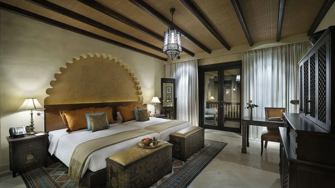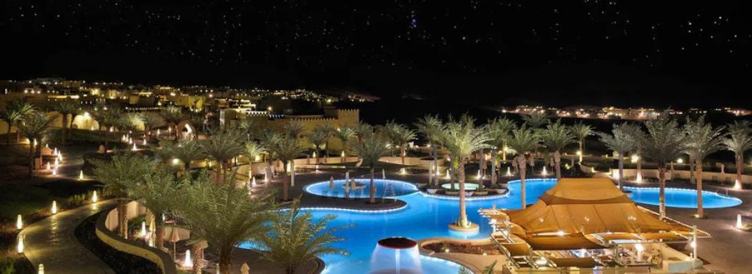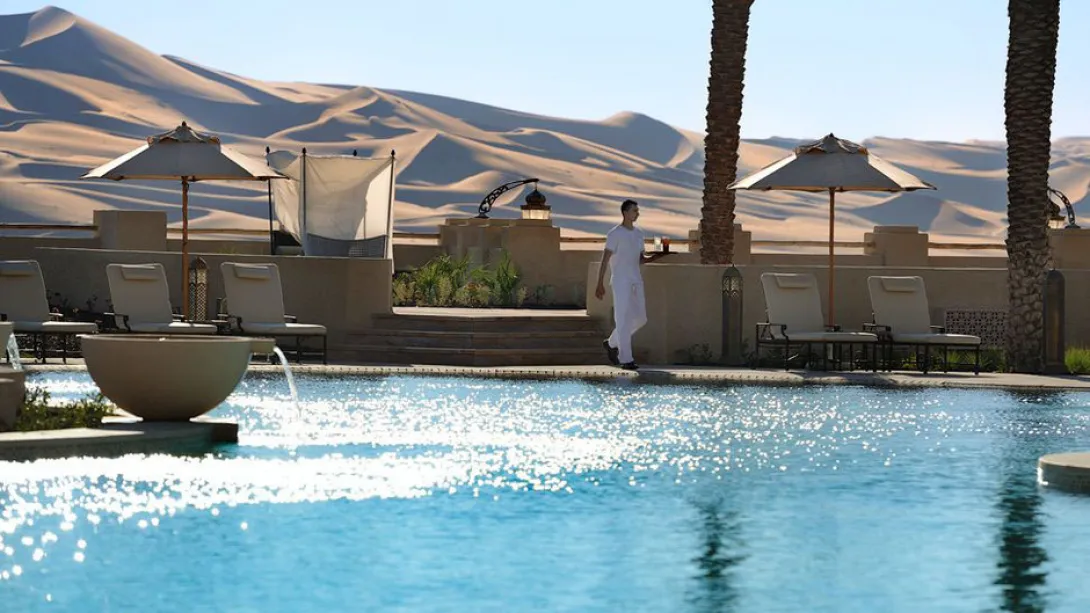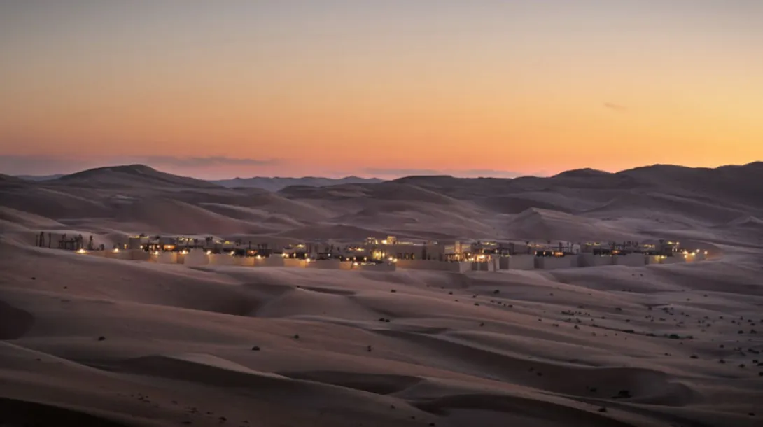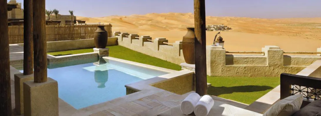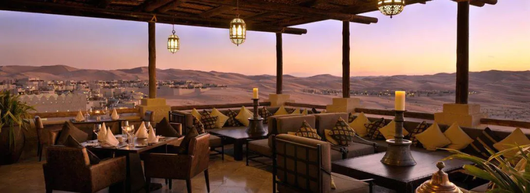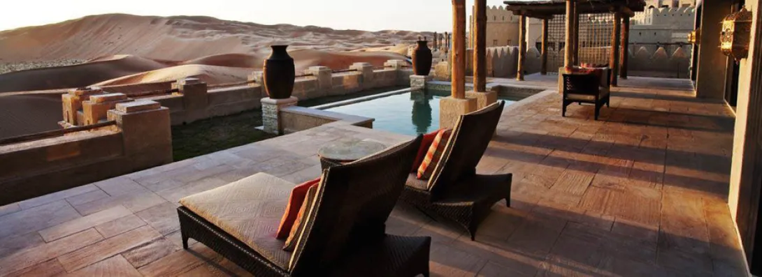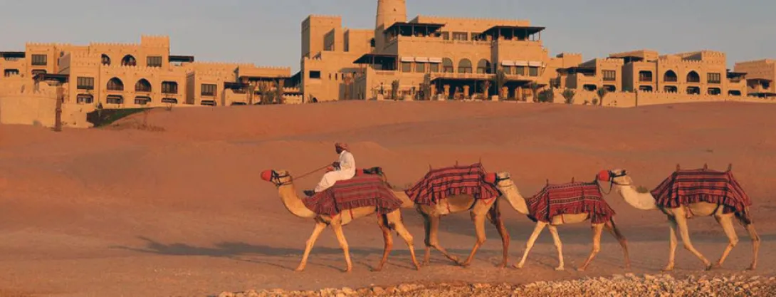 Dunas de ouro a perder de vista, um hotel a lembrar uma aldeia fortificada do Sahara, reino de silêncio e luxo, o Qasr Al Sarab parece ter saído directamente de um conto das 1001 Noites.A uma hora de Abu Dhabi, exactamente onde começa o lendário deserto do Liwa - o maior deserto de areia do mundo - este sonho impregnado de tradição beduína oferece 206 unidades (177 enormes quartos com terraços e 29 villas com piscina privada e mordomo 24h/24) combinando habilmente conforto e requinte.Tal como um requintado caravansérail, o hotel esconde fabulosos tesouros, preciosos objectos de decoração, peças de colecção e obras de arte (mais de 2.000 pinturas antigas e contemporâneas e 2.500 objectos, alguns dos quais com centenas de anos). Móveis yemenitas e omanis feitos à mão, grossos e confortáveis tapetes e tecidos bordados ou lanternas ciseladas dão a este lugar um ambiente intemporal e único.Tem 3 courts de ténis, 3 restaurantes (o Al Waha de cozinha internacional, o Suhail de carnes e frutos do mar, e o Ghadeer, onde uma ponte de velas leva os hóspedes para o paraíso do Mediterrâneo), o serviço é excelente e o spa, aninhado entre jardins e fontes, transporta os hóspedes até às delícias do bem-estar oriental, com tratamentos Vichy e massagens tailandesas...