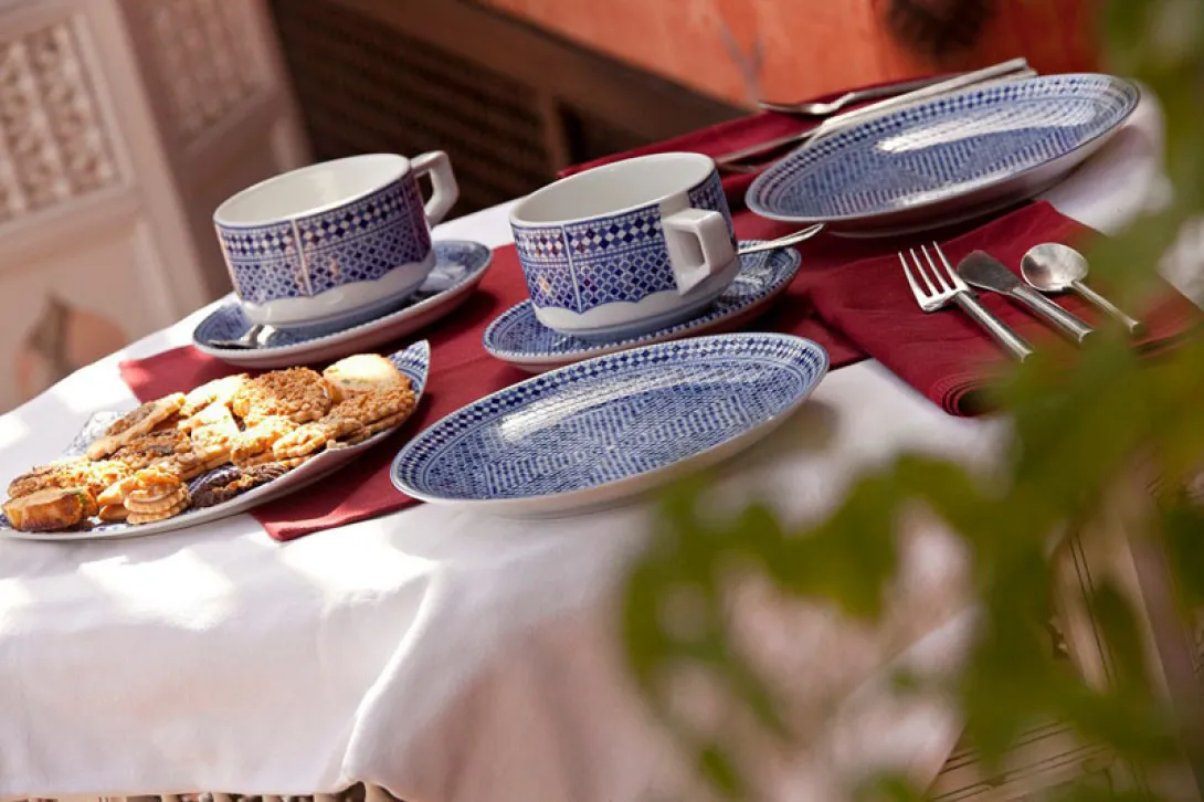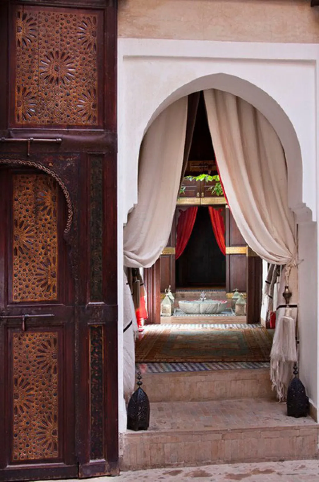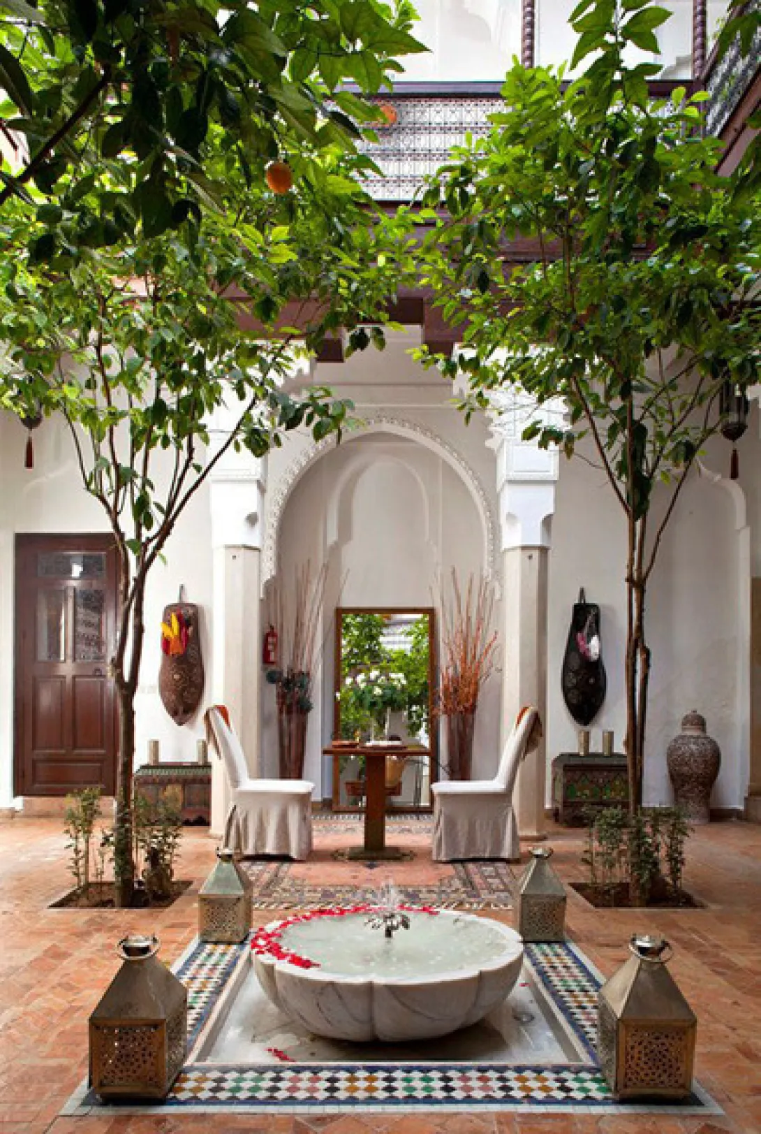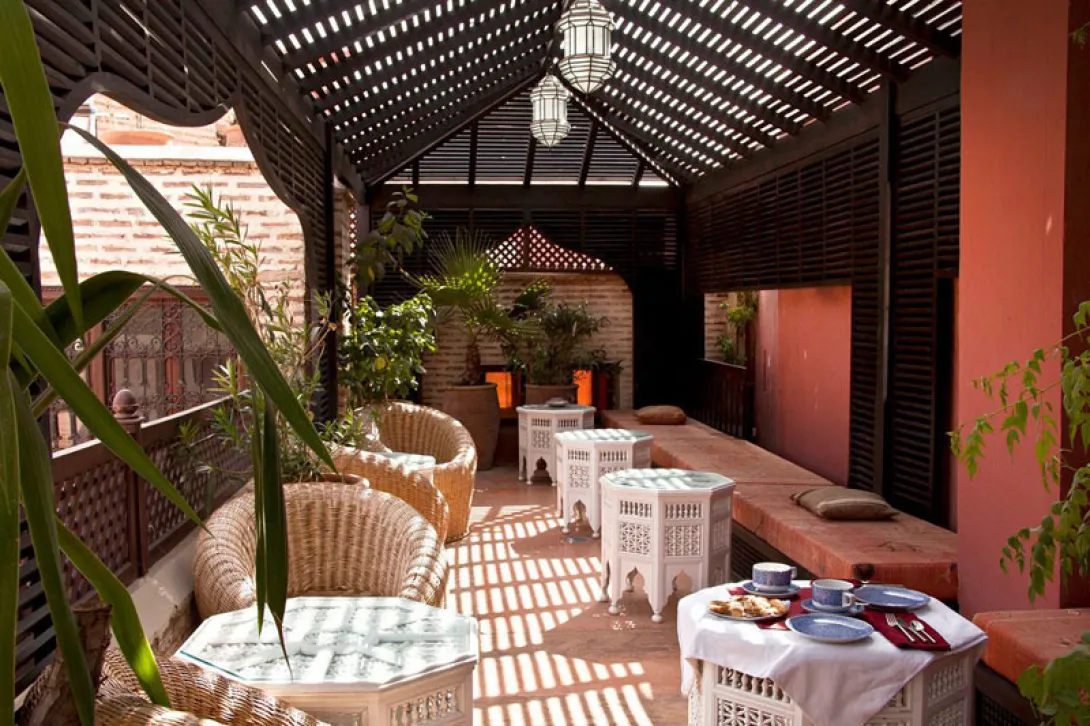 Situado em Mouassine, este riad tem dois pátios, uma pequena piscina com máquina de contra-corrente, açoteia, sala de massagem, um hammam e seis quartos e suites.A palete de cores do Riad Zolah evoca a medina marroquina: contra um pano de fundo completamente branco de colunas, móveis e paredes, cintilantes metros de seda adornam os nichos e alcovas; sedas em tons de rosa, laranja, vermelho e roxo enfeitam arcos elaborados; coloridas almofadas listradas, de tecidos feitos à mão e tingidos da Medina, adornam os confortáveis sofás... Cada uma das seis suites e quartos têm ar condicionado e aquecimento - alguns têm lareiras para aquelas romanticamente acolhedoras noites de Inverno de Marrakech!Com lençóis de algodão egípcio, roupões de banho de luxo e produtos de higiene pessoal, babouchas como cortesia, cofre, Bose iPod docks e WiFi em todo o lado, os hóspedes desfrutam ali de uma experiência completa, independentemente da escolha do quarto ou do orçamento disponível.Os quartos não têm, propositadamente, televisões, mas o Riad Zolah coloca à disposição dos hóspedes, gratuitamente, de leitores de DVD portáteis e de uma biblioteca de filmes digitais on-demand.Se optar por jantar chez Zolah, seja ao pôr do sol no fabuloso terraço, na sala de jantar, ao ar livre à beira da piscina, ou no seu próprio quarto, o chef apresenta sempre o melhor do mercado do dia - basta dizer de manhã que gostaria de jantar no riad nesse dia.Zolah dispõe ainda de um pequeno hammam, de uma sala de massagens e serve a cada hóspede, à chegada, um telemóvel com o número de telefone do Riad pré-programado.