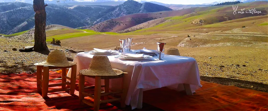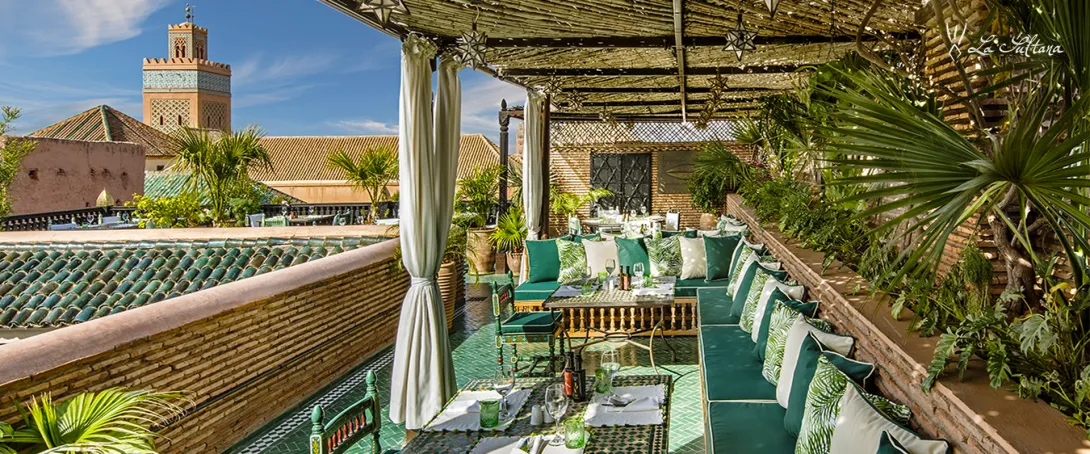 Se optar pelo La Sultana Marrakech, a sua experiência de jantar será no terraço da cobertura com vista privilegiada sobre a cidade. Poderá observar as montanhas do Atlas cobertas de neve no horizonte e, logo abaixo, a vida agitada da Medina com os seus sons, cheiros e cores numa atmosfera gastronómica requintada sob o céu cintilante, cercada pelo Minarete da Mesquita e pelo tambor de um músico tradicional.