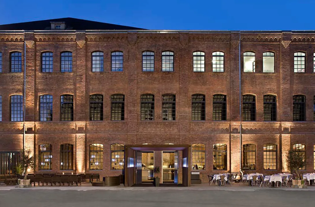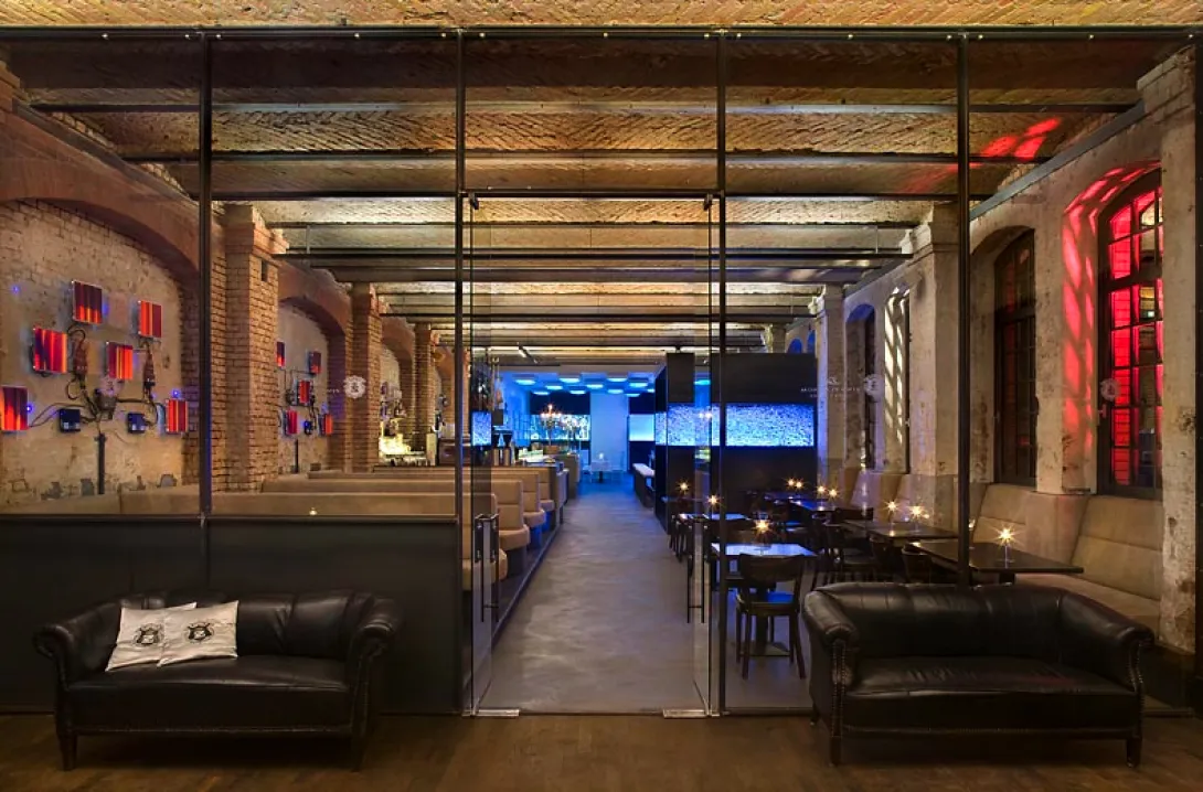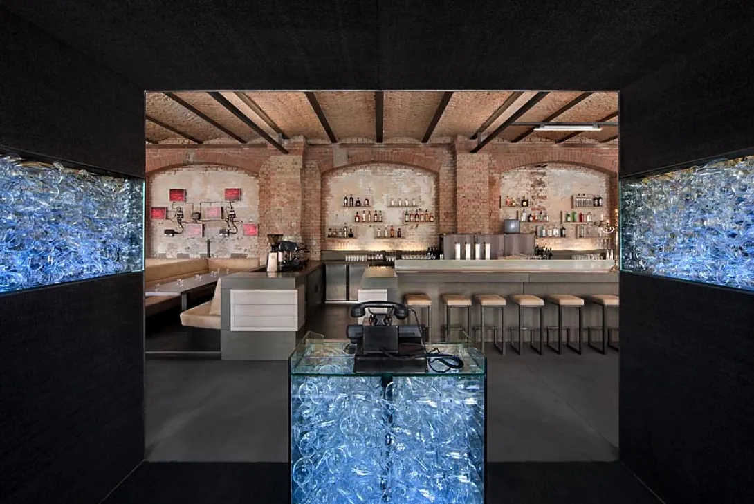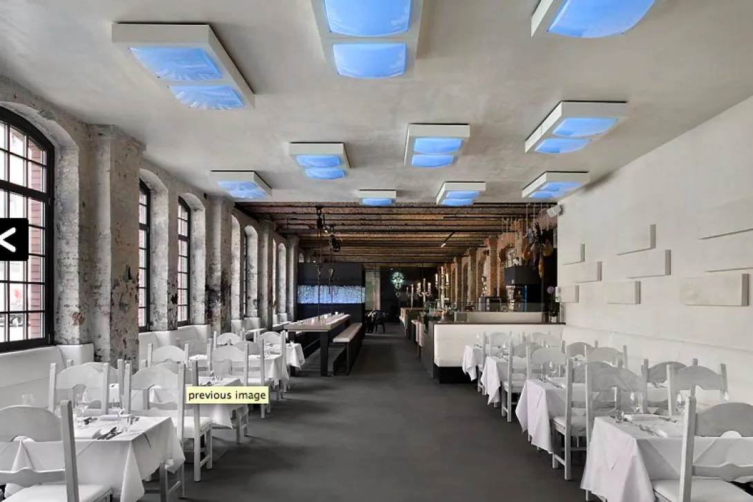 O restaurante Sage fica às portas do Spindler e Klatt, em Kreuzberg, o bairro industrial que começa cada vez mais a distinguir-se pelos vários design showrooms e restaurantes que surgem a cada dia. Fica um bocado no meio de coisa nenhuma, na margem do rio - mas a vizinhança é animadíssima durante as últimas horas do dia e não faltam, definitivamente, opções de clubs e bares para passar a noite. Tal como outros ocupantes de Kreuzberg, o Sage está instalado no recuperado edifício de uma antiga fábrica. A área que ocupa é imensa, e o altísismo tecto fá-lo parecer ainda mais impressionante. O tijolo à vista parece ter ficado do edifício original. No centro uma infinita mesa comum; tão alta como o balcão de um bar, de tal forma que, sentados, não conseguimos chegar com os pés ao chão.