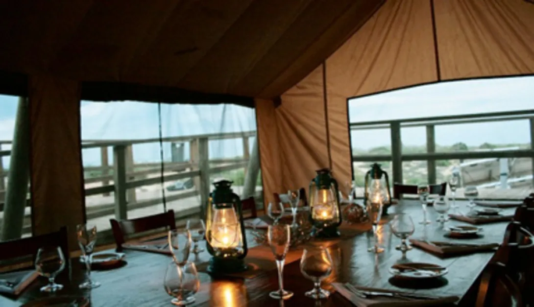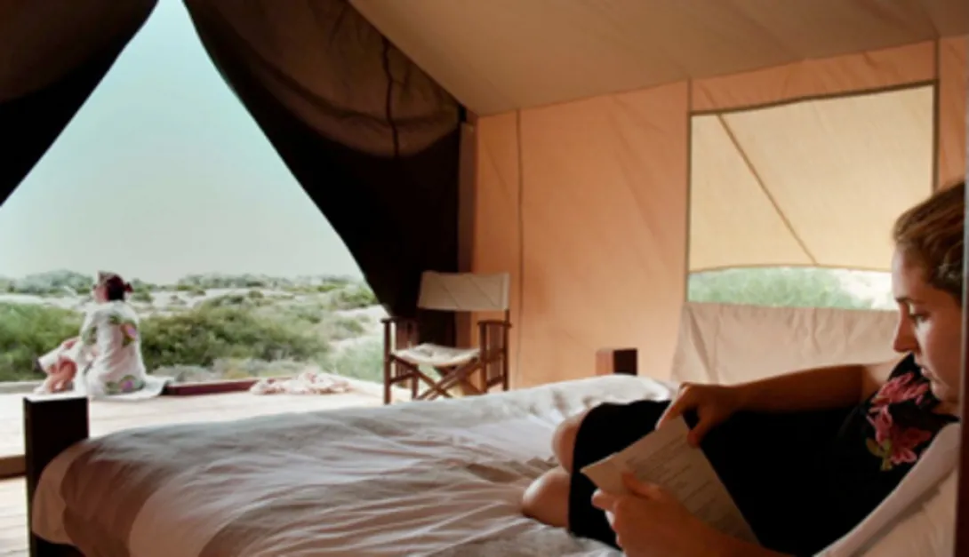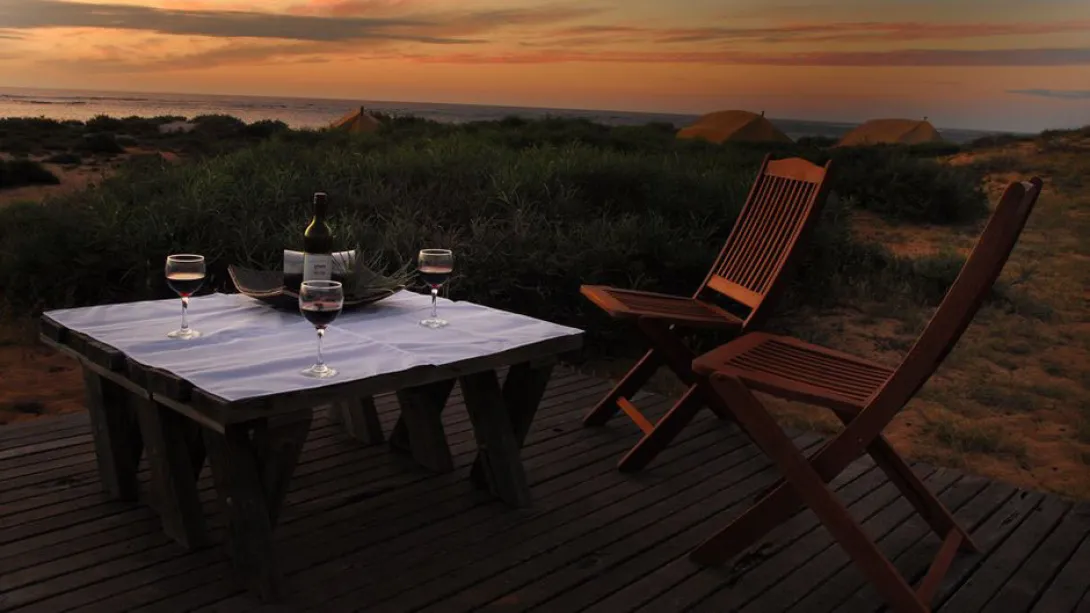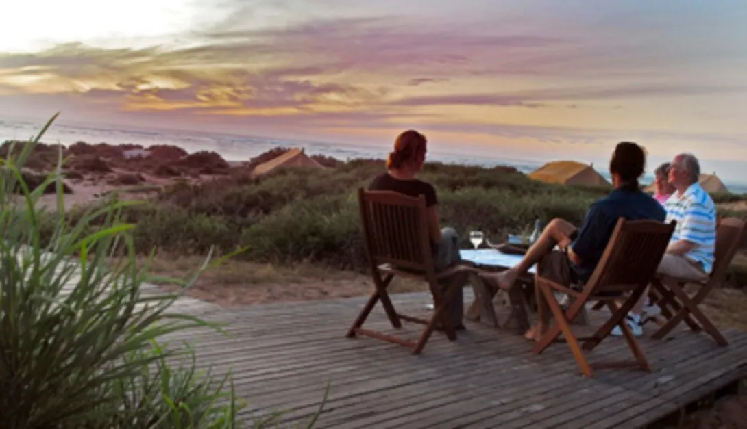 Luxuoso bush camp em cima da praia, Sal Salis Ningaloo Reef está instalado nas dunas costeiras de Cape Range. Com detalhes luxuosos, apresenta também credenciais ecológicas - electricidade solar e casas de banho com compostagem e reciclagem. Dormir em tendas, jantar sob um fantástico céu estrelado e passar os dias na água nadando e observando os imensos cardumes de peixes que consideram o lugar como a sua casa pode ser uma excelente e diferente opção de férias...A localização pode ser tudo no mundo dos resorts. E é assim com o Sal Salis Ningaloo Reef - como único refúgio de serviço completo no Cape Range National Park, na Austrália Ocidental (Património Mundial), é a única maneira de ficar ali e conhecer a fundo os magníficos recifes do parque. Sendo a única opção poderia tornar o staff um pouco mais "preguiçoso", mas o pessoal do Sal Salis é super experiente e atencioso.Em apenas nove confortáveis tendas construídas com madeira do deserto, a ideia é partilhar experiências e momentos únicos. Por isso mesmo, as refeições são tomadas em redor de uma imensa mesa comum.Diga-se em abono da verdade que ali não há muita coisa para fazer: snorkeling é um highlight, com centenas de espécies de peixes e corais para ver. Pode também passear de caiaque para ficar mais perto de tartarugas, tubarões, arraias e golfinhos. Em terra firme, não deixe de caminhar até ao desfiladeiro de Mandu Mandu, e observar os cangurus, wallaroos, e os pequenos cangurus das rochas. Quando a noite cai, entenda-se na sua rede para assistir a um show de luzes como jamais viu, com a Via Láctea derramada num céu de veludo negro.