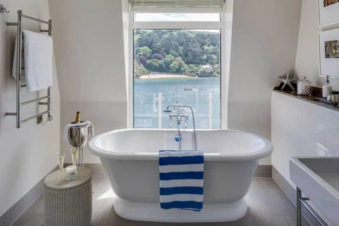 é já reconhecido como um dos hotéis à beira mar mais desejáveis do Reino Unido e um premier address na costa sul. Uma recente remodelação de vários milhões de libras criou este chique novo luxury spa hotel na margem do estuário de Salcombe, que inclui um spa, cinema privado, restaurante à beira mar com amplos terraços ao ar livre, tudo com vista panorâmica para um dos litorais mais dramáticos no Reino Unido.Com 50 quartos, ali acorda-se com uma vista excepcional sobre o estuário de Salcombe e, quando se deslizam as portas da varanda respira-se o ar fresco do mar Devon. Depois de um dia a explorar a costa, e antes de se reclinar num dos terraços com vista sobre a água e os iates velejando, não deve perder uma passagem pelo Harbour Spa, o spa do hotel.O hotel dispõe ainda de uma piscina interior e de um excelente restaurante, o Jetty, que tira o máximo partido da sua localização no estuário, com menus criados pelo premiado Chef Alex Aitken, oferecendo pratos frescos e sazonais.Ideal para quem adora o mar e/ou velejar, o Salcombe Harbour Hotel possui as suas próprias amarras privadas para os hóspedes marítimos. Aliás, o hotel transmite uma sensação de iate-clube, e o seu terraço é um local privilegiado para assistir com pompa à célebre Salcombe Regatta, que se realiza em Agosto.Uma úlitma nota: como não poderia deixar de ser, o hotel aceita cães...