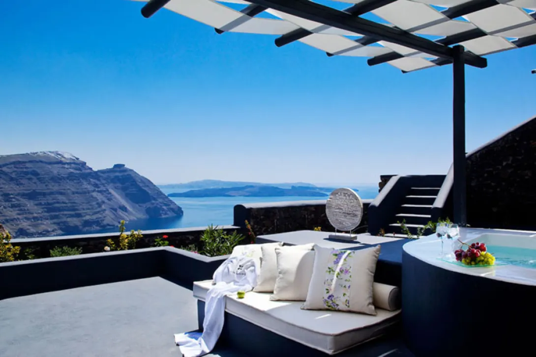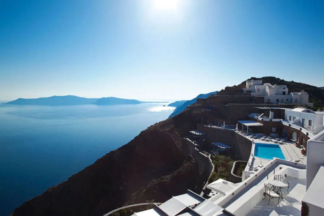 Descansando num pequeno promontório de Santorini, San Antonio aguarda sereno, preparado para impressionar os visitantes de todo o mundo.Os hóspedes são transportados em carros privados desde o aeroporto e, chegados à entrada esculpida na Caldera de Santorini, os seus músculos cansados e tensos da viagem imediatamente descontraem e surge uma sensação de antecipação do que aí vem.Os quartos, de paredes brancas, sugerem despertares suaves e a placidez do lugar permite absorver ao máximo o dia que nasce. As manhãs ali são impressionantes. Todos os quartos em San Antonio são incríveis: das varandas dos seus 26 quartos, tem-se uma vista magnífica das águas azul-turquesa do Mar Egeu. Para ambos os lados ficam as rochas vulcânicas da Caldera e, apesar de apenas a cinco quilómetros de distância de Fira, capital de Santorini, os hóspedes sentem-se a um mundo de distância de tudo.Aninhado entre as coloridas e, pitorescas aldeias de Oia e Imerovigli, San Antonio dispõe também de um restaurante, o Cliff Side, que oferece pratos deliciosos de comida grega contemporânea, para além de uma romântica sala de jantar privada, considerada como uma das mais exclusivas experiências de jantar em Santorini.Membro da Small Luxury Hotels, San Antonio tem ainda um pequeno spa com jacuzzi externo e jet shower.