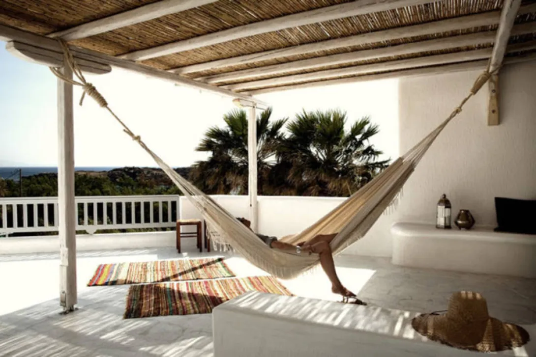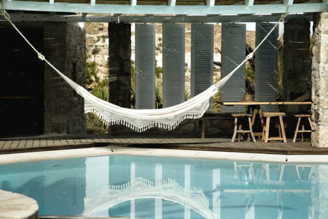 Do lado de fora parece outro encantador e pequeno hotel costeiro caiado de Mykonos...O cenário é espectacular, com abundantes vistas sobre o Mar Egeu. A praia fica a três minutos a pé. A piscina, cativante, tão azul como o mar ao fundo, com redes e espreguiçadeiras em redor. O restaurante, top, serve refeições frescas de estilo mediterrânico, com um bar a corresponder. E, por último mas não menos importante, os 33 quartos: elegantes e inundados pelo sol e pela brisa do Egeu.Mas o que realmente distingue o San Giorgio é a propriedade. Pode não ser um clássico, mas a história e origem do hotel é épica. Tudo começou quando um dos proprietários, Mario Hertel, navegava até à ilha num barco de festa de 15 metros.Ele havia carregado o barco com os seus amigos - DJs, dançarinos, promotores de festas - com a única ambição de ter um verão hedonista na ilha; as suas festas errantes na praia eram os eventos mais in da cidade, mesmo numa cidade com uma grande quantidade de acontecimentos nocturnos.As famosas festas chamaram imediatamente a atenção do Paradise Club (então em decadência), que seduziu Hertel a fazer renascer o lugar e, em poucos anos, tornou-se um dos dance clubs mais famosos da Europa, enchendo a ilha de shows e nomes como Moby, David Guetta ou Avicii, entre outros tantos artistas de topo.O hotel é, essencialmente, uma extensão do clube, embora bastante mais tranquilo. Foi comprado por Hertel e um parceiro a um pescador local.Ali pode facilmente passar as suas férias inteiras saltitando pelas praias próximas (algumas delas relativamente desertas), balançando nas redes do hotel, mergulhando na piscina, deliciando-se com os pratos leves da cozinha aberta e tomar banhos de sol no deck privado do hotel com vista para o mar.Mas se quer um pouco mais dos seus dias de lazer tranquilo, vai saber especialmente bem ficar ali. Como hóspede, recebe tratamento VIP no Paradise Club, o que significa ignorar as filas à entrada, acesso à sala VIP, serviço de transporte gratuito de ida e volta, e prioridade na reserva de mesa. E como o hotel é propriedade dos directores não oficiais da vida nocturna de Mykonos, eles conhecem todos os melhores restaurantes, bares e clubes...