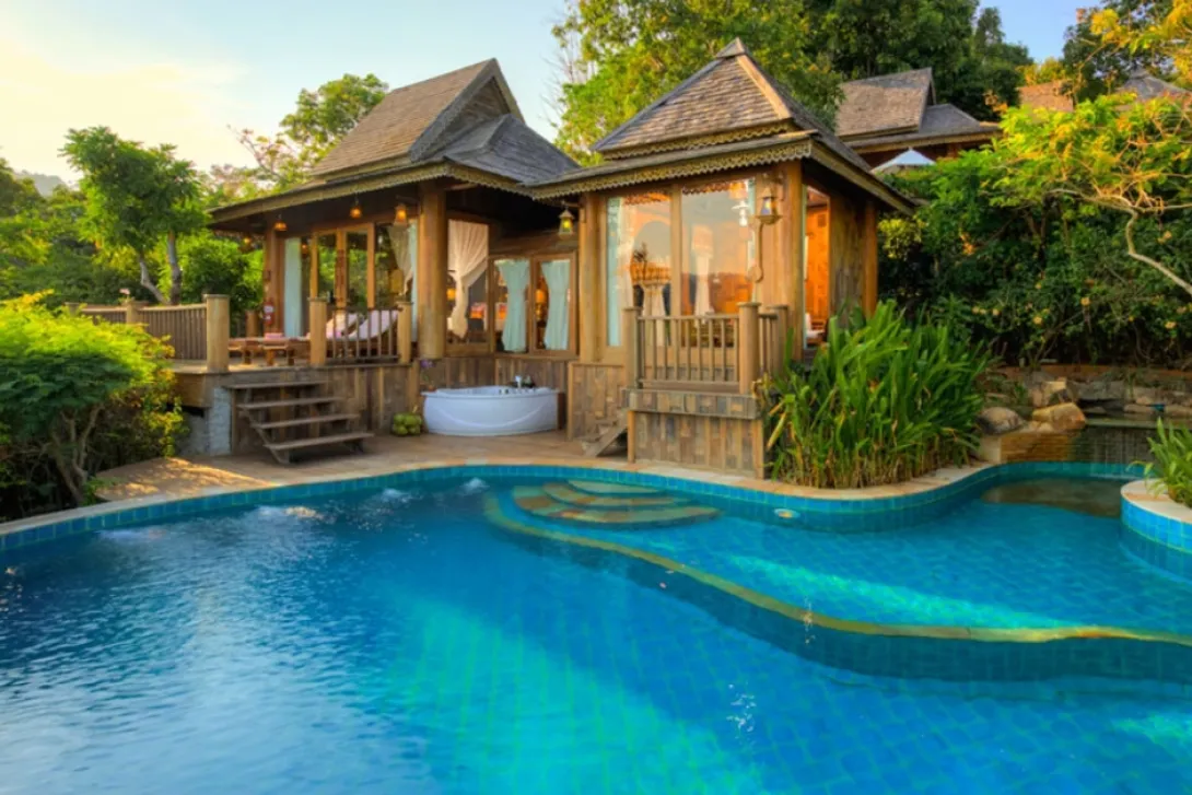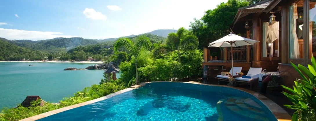 Santhiya Koh Phangan Resort e Spa está situado numa colina com vista para uma baía cristalina na pitoresca ilha paradisíaca de Koh Phangan. é um refúgio ecológico, situado contra um cenário de florestas tropicais exuberantes, uma praia privada, uma piscina exterior gigantesca com cascatas, um spa para a total indulgência tropical e uma cozinha tailandesa gourmet.Os 99 quartos e suites estão instalados em deslumbrantes villas com telhados de palha e madeira de teca espalhados por 7 hectares, por forma a assegurar o máximo de privacidade a todos os hóspedes. Todas as villas têm uma varanda com piscina ou vista para o mar - se aceita uma dica, fique numa Supreme Deluxe Suite: tem um deck solarium com uma soberba vista para a encosta repleta de coqueiros.Não deve perder também um passeio de elefante através da selva de Koh Phangan; ou uma caminhada para descobrir os fabulosos locais de mergulho da zona com jardins de corais impressionantes; e, claro, não se esqueça de aproveitar ao máximo os tratamentos no fantástico spa.O resort oferece ainda aulas de cozinha para dominar a arte da culinária tailandesa.