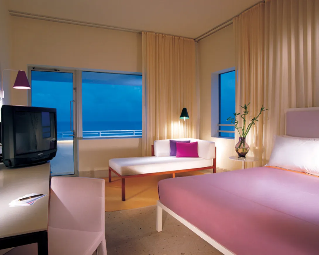 Desenhado pelo famoso arquitecto britânico David Chipperfield - e com as suas áreas exteriores inspiradas nas intensas cores dos Jardins de Majorelle, em Marrakech -, The Shore Club redefine o "cool" na South Beach de Miami. O marcante lobby Art Deco foi concebido com uma tranquila transição para os labirintos de jardins com passagens secretas, alcovas e uma sucessão de diferentes quartos exteriores.Idealmente localizado em frente ao mar, mas a curta distância das mais populares atracções de South Beach, tem 70 suites, 370 quartos, 7 bungalows duplex, uma penthouse triplex e uma beach House.Os 7 bungalows estão decorados com tecidos pintados à mão por Kim MacConnel e Izhar Patkin, e têm chuveiros no exterior e área de jantar com vista para o jardim que se integra na paisagem que envolve a piscina.A Penthouse Suite, triplex, tem elevador privado que dá acesso aos três andares. Inclui, ainda piscina no terraço superior, sala de vapor e sauna, chuveiro exterior e vistas panorâmicas sobre a cidade e o oceano de 360 graus.A Beach House, é uma villa duplex, com piscina privada e área exterior de jantar e lounge. Está mobilada com camas de madeira trabalhada, almofadas que misturam tecidos de várias proveniências, cadeiras de ráfia, tamboretes e mesas de apoio.A gastronomia do The Shore Club é também outra inesquecível experiência. Oferecendo as mais recentes tendências da cozinha japonesa, o célebre Nobu -de Nobu Matsuhisa e Robert DeNiro - também está presente no The Shore Club. Inspirado nas tradicionais técnicas japonesas e integrando influências latinas, esta sofisticada cozinha oferece contemporâneos e sedutores sushi, sashimi e outros clássicos japoneses. Outra opção, num ambiente mais rústico, é experimentar a tradicional cozinha toscana de Agostino Sciandri, criações deliciosas e originais que podem ser degustadas num terraço com soberba vista sobre o oceano.O hotel oferece ainda um espaço, o Skybar Miami Beach, instalado num cenário sensual, entre paredes azul cobalto, fontes e pérgolas de um colorido jardim tropical, e considerado um dos spots da noite de South Beach. O espaço está dividido em quatro áreas, ou bares: o Redroom, organizado em redor de uma fonte de luz e de um chão de madeira vermelha, é uma justaposição de mobiliário moderno e ecléctico, de uma mesa em aço polido a uma cadeira de Napoleão III forrada a seda; Redroom Garden, concebido como um outdoor living room, está decorado com plantas perenes, buganvílias e martírios dispostas em vasos pintados e decorado com mobiliário do Oriente; o Rumbar, que serve 75 diferentes rums, e está rodeado por cortinas brancas criando um ambiente intimista; e, finalmente, o Sandbar, instalado na areia e preparado para festas privadas, decorado com armários de madeira e ráfia, tamboretes e mesas de apoio. Lanternas de ferro iluminam o espaço criando um ambiente mágico.O The Shore Club's dispõe ainda de duas piscinas que parecem diluir-se no infinito, uma de medidas olímpicas, e que estão rodeadas por enormes espreguiçadeiras e coloridas almofadas de vários tamanhos pintadas por Izhar Patkin e Kim MacConnel. A praia é facilmente acessível desde qualquer das piscinas.O hotel oferece ainda um espaço de serena atmosfera zen, construído e decorado com materiais naturais, e que integra salas de tratamento, terraços exteriores e decks de massagem. Ali, os hóspedes deliciam-