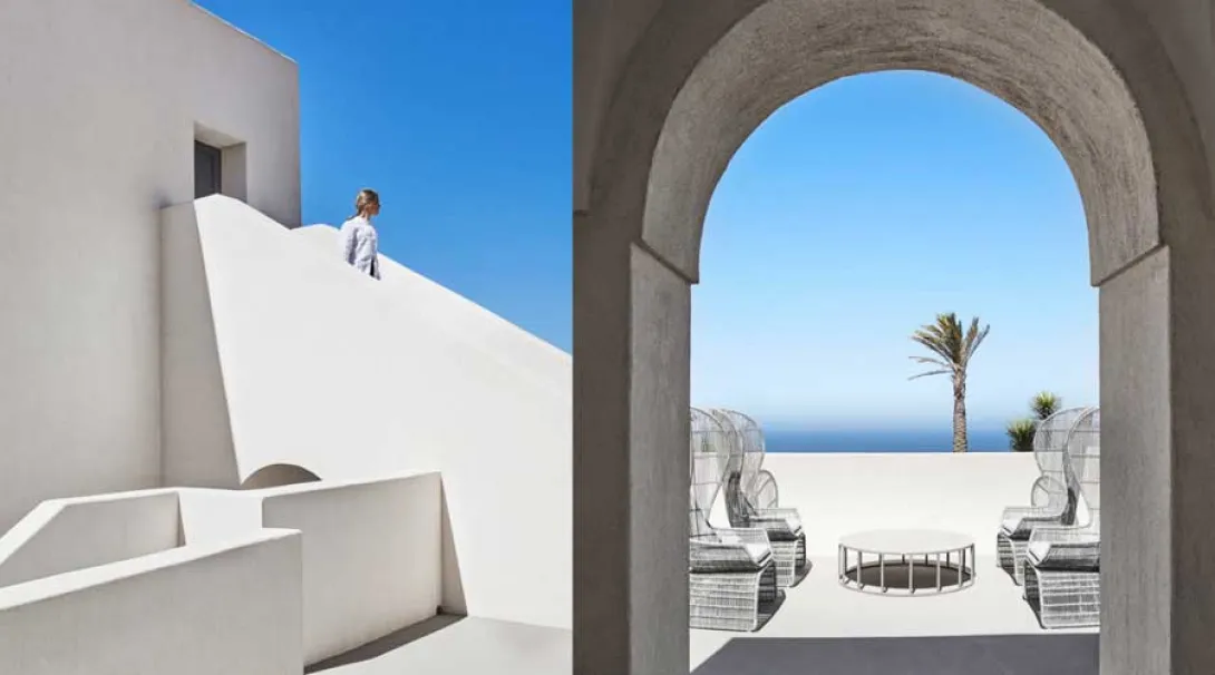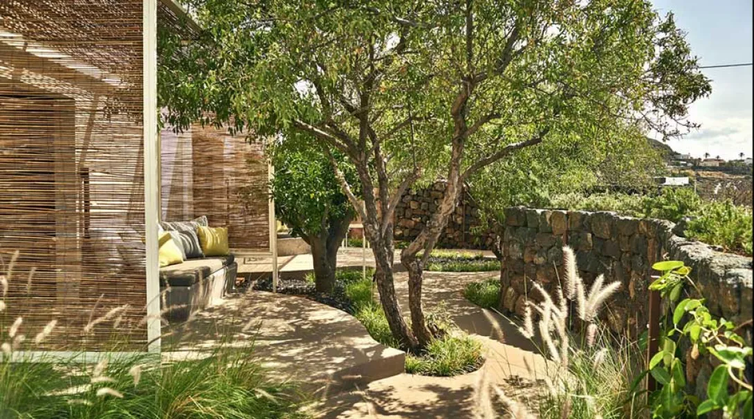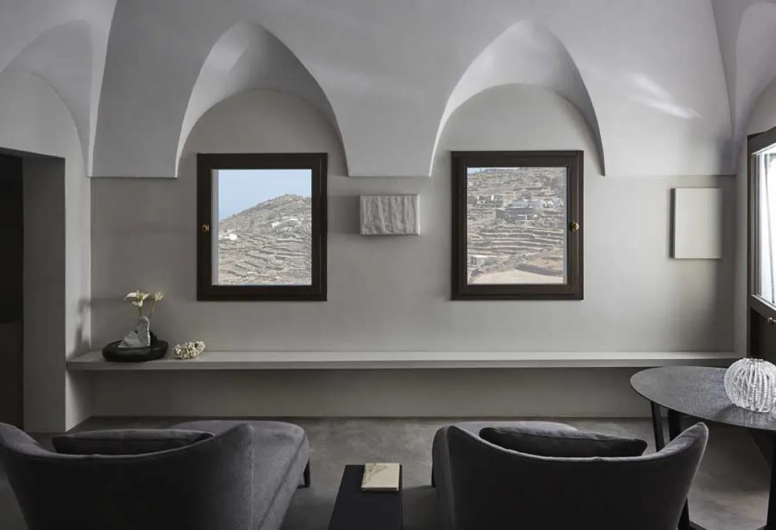 Sikelia está em perfeita harmonia com a sua história e a paisagem espargidada de lava. Espere linhas puras, limpas e uma paleta monocromática, tectos abobadados e arcos, bem como uma piscina alinhada por palmeiras.