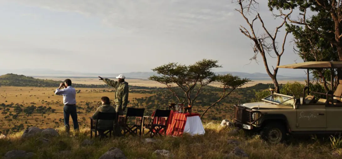 No caso de ter o sonho de observar a vida selvagem a partir do conforto de uma piscina, Singita Sasakwa Lodge é o lugar...... e, se puder, esteja lá para ver o sol espreitar pela manhã, onde a magnífica vista parece cumprimentar os hóspedes quase tão frequentemente como os simpáticos sorrisos do staff.De piscinas de borda infinita que parecem flutuar sobre a planície, a passeios a cavalo guiados e safaris de balão, o Lodge traz as maravilhas do Serengeti para bem perto. Depois, com mais de 140.000 hectares de savana, os avistamentos de espécies raras são comuns, graças ao olhar experiente dos guias do Sasakwa.Situado numa reserva particular que pode receber até 34 hóspedes, Singita Grumeti Reserves, Sasakwa Lodge instalou o seu luxuoso refúgio no topo de uma cénica colina africana. E, se alguma coisa pudesse ainda rivalizar com o esplendor natural que o rodeia, as nove cottages e a villa apresentam opulentos interiores. Ali, a Inglaterra reúne-se na Tanzânia, em peças ornamentais imponentes e castanhos quentes ecoando as cores da paisagem, enquanto a madeira, trabalhada e por todo o lado, é simples, bem-feita e bonita de se ver.