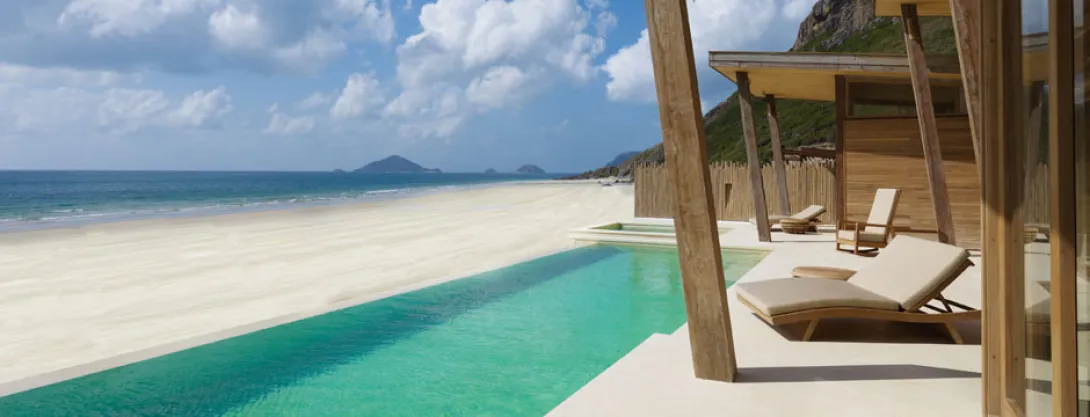 Fantástica arquitectura, extraordinária localização -em cima de uma das mais belas praias do sudeste asiático -, é ideal para casais em lua de mel, famílias ou para quem procure paz e sossego longe das multidões.Con Dao é uma jóia numa ilha - num arquipélago, para sermos mais exactos -, com a sua vida selvagem protegida, incluindo inúmeras espécies em risco de extinção.As villas são feitas de madeira "sustentável", espaçosas, luminosas, arejadas, com vistas panorâmicas e piscinas privadas.A comida é uma sublime mistura de peixes e mariscos locais, frutos e vegetais, definida como asian fusion com um toque da França colonial.