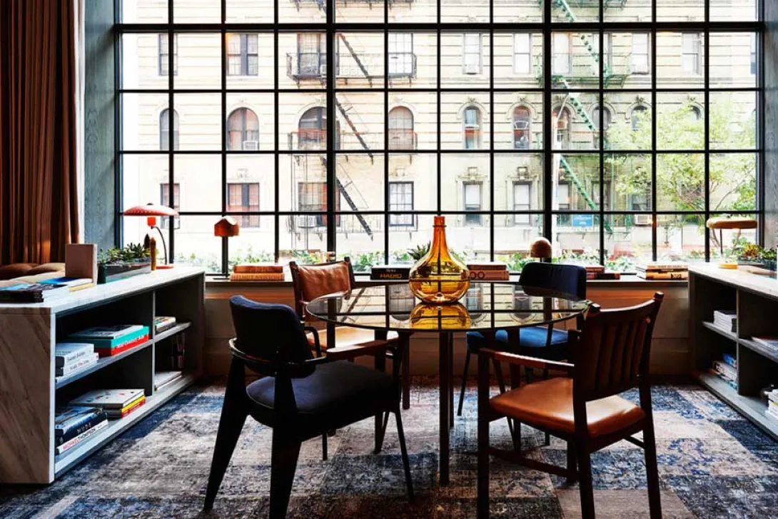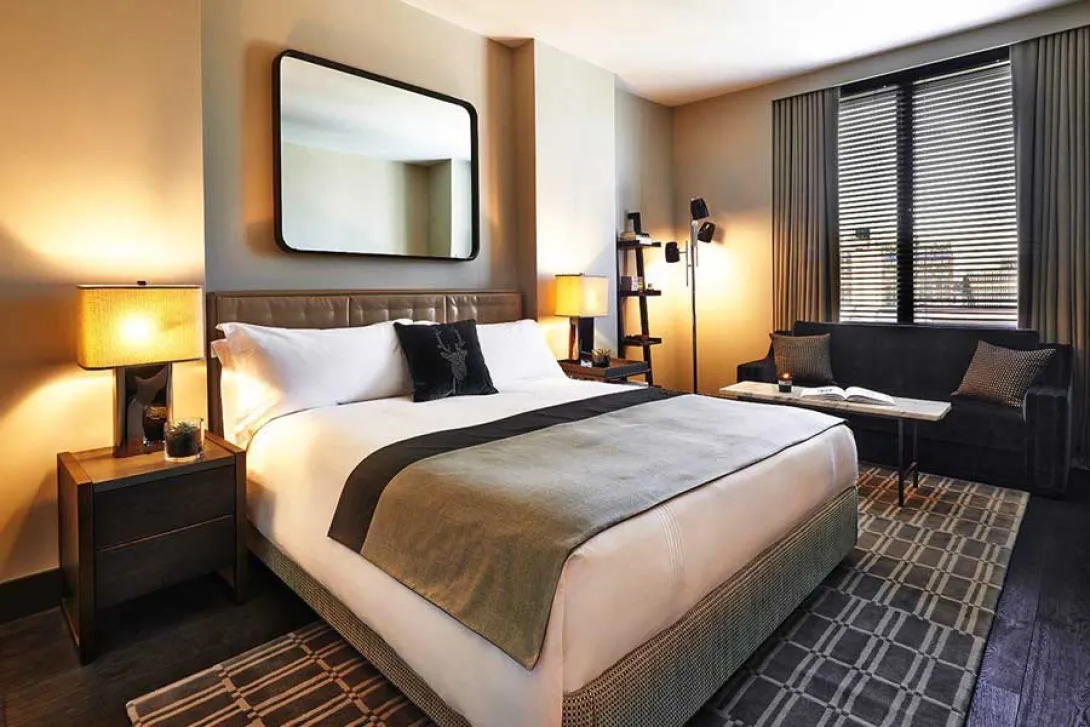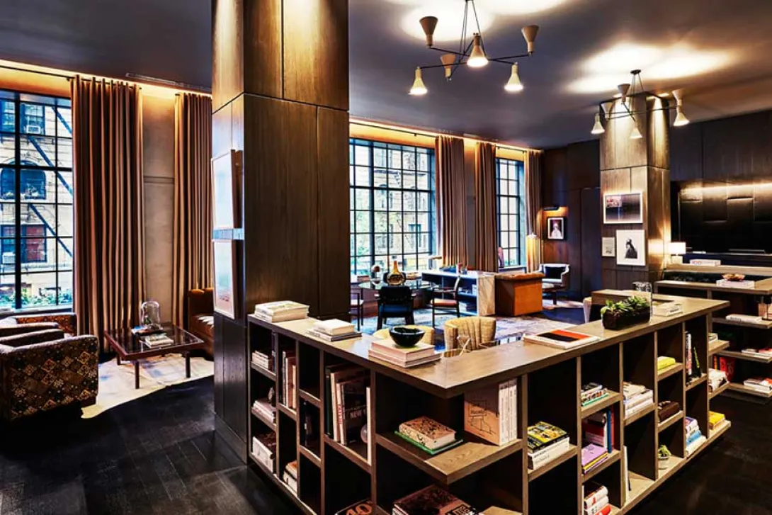 Os 100 quartos, tipo loft , são típicos do centro de Manhattan, com um estilo entre o luxuoso e o boutique, roupa de cama italiana, uma variedade de produtos comestíveis Dean & Deluca e elegantes casas de banho, com intensa sumptuosidade e mármore em abundância.