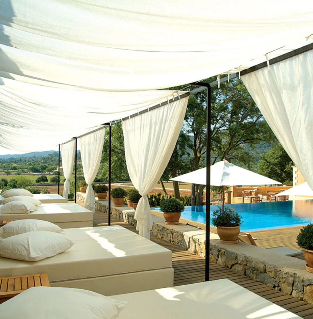 Instalado no sopé de uma colina, no meio de terras agrícolas e da natureza, Son Brull Hotel e Spa é um mosteiro que combina a arquitetcura centenária e o charme do velho mundo com um verdadeiro estilo contemporâneo e conforto.Os 23 quartos são espaçosos e oferecem vistas fabulosas sobre a paisagem circundante. Oliveiras centenárias cercam a elegante piscina de borda infinita, com vista para a colina próxima.O restaurante 365 é o coração do hotel e oferece uma excelente cozinha gourmet tradicional de Maiorca - não perca o cordeiro servido com polenta e curry. O hotel organiza também eventos de degustação de vinhos durante todo o ano, com colheitas de todo o país.O Son Brull Hotel e Spa dispõe ainde de um sap, aliás o primeiro spa mallorquino no mundo, com tratamentos feitos a partir de produtos locais e artesanais.