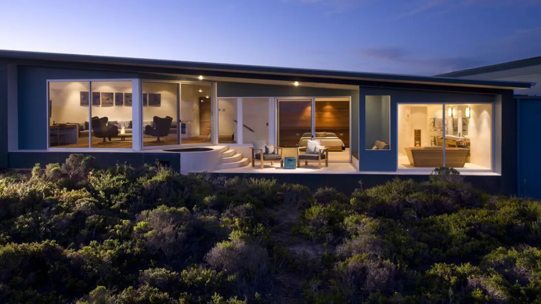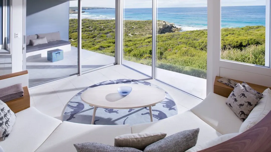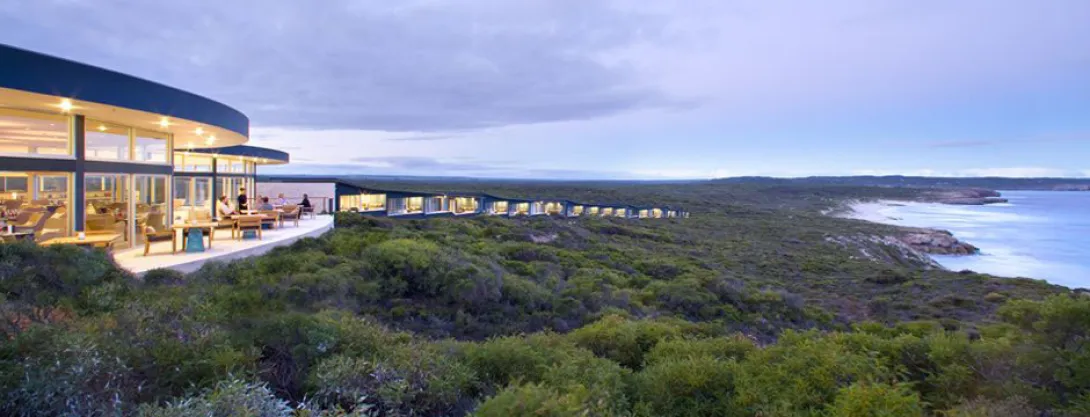 A Kangaroo Island, 120 quilómetros a sudoeste de Adelaide, apresenta um cenário rochoso único e uma vida animal que inclui leões marinhos, koalas, cangurus (claro) e alguns dos mais pequenos pinguins do mundo - é, aliás, chamada de Galápagos da Austrália...Hayley e James Baillie - James ajudou a gerir algumas luxuosas propriedades ao longo da Great Barrier Reef, incluindo o celebérrimo Lizard Island Resort - desenvolveram este projecto durante vários anos. Concebida pelo arquitecto Max Pritchard, reconhecido localmente pelas suas inovadoras casas de design contemporâneo, a propriedade disposta ao longo da baía de Hanson (na costa sudoeste da ilha) parece dissolver-se na paisagem natural, com o seu exterior em pedra local (pedra-cal), madeira e vidros reciclados, e inclui 21 suites.Guias e naturalistas levam grupos de até 10 hóspedes a visitarem as maravilhas da ilha, como o Seal Bay Conservation Park, onde se observam baleias "brincando" ao longo da costa, e às Remarkable Rocks, uma colecção de gigantescas rochas no Flinders Chase National Park.O Southern Ocean Lodge é um exemplo de arquitectura sustentável ou, como os responsáveis do lodge gostam de referir "organic luxury". Pritchard é reconhecido também pela sua "económica" utilização dos recursos financeiros e ecológicos: um esquema de design bastante inovador "recolhe" o calor natural, e um sistema original de filtros protege a vida animal local dos resíduos, esgotos e restos de comida.O Inverno, entre Junho e Agosto, é quando os joeys (koalas bebés) emergem das bolsas das suas mães, um espectáculo único.O lodge também é reconhecido pela sua excelente cozinha. O menu muda diariamente e são utilizados ingredientes locais frescos e oferece também uma extensa carta de vinhos de todo o país.