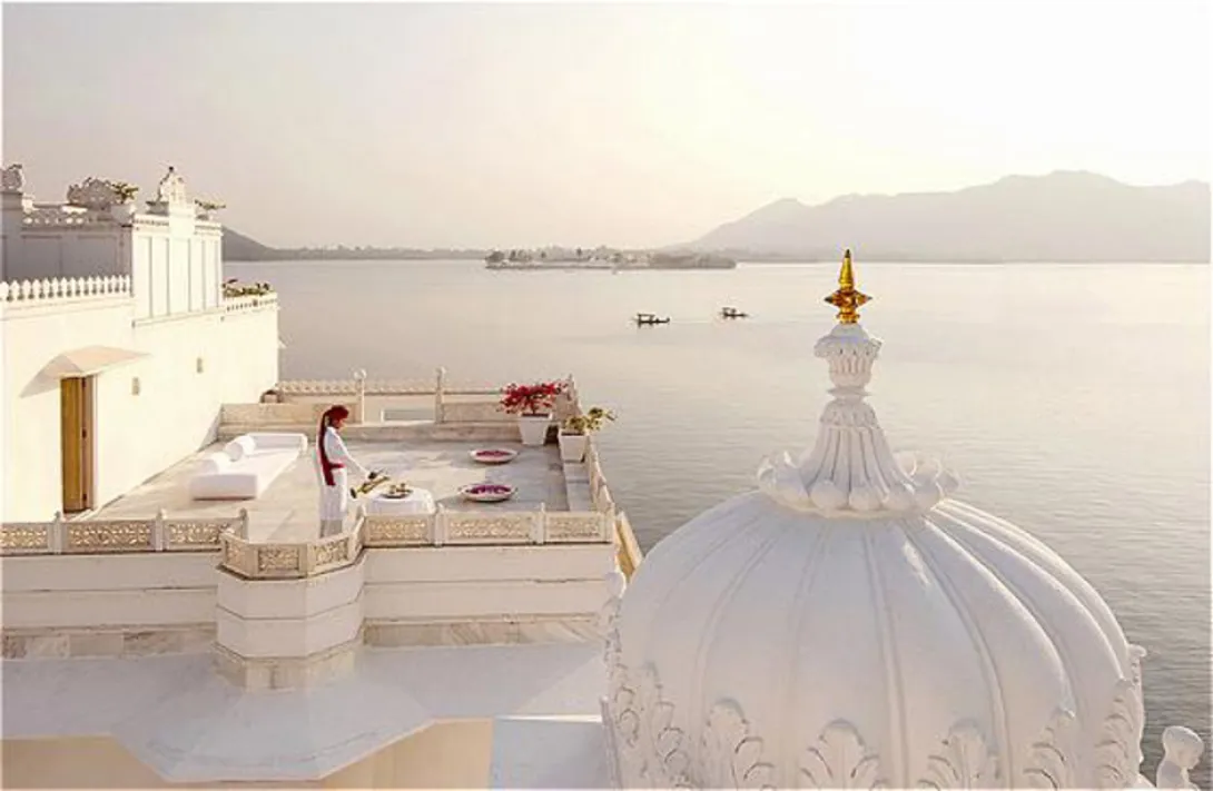 O encantador hotel Lake Palace, um dos mais belos edifícios da índia, fica situado no meio do Lago Pichola, em Udaipur, no Rajastan. Foi construído pelo Maharana Jagat Singh II no século XVIII e utilizado como palácio de Verão pelas famílias reais de Udaipur até 1955. A sua fachada de mármore branco demonstra bem as suas influências Mughal e recorda vagamente o Taj Mahal, em Agra.Lá dentro, pequenos pátios floridos, fontes e jardins de odores únicos. As áreas públicas deste hotel saído de um conto de fadas estão mobiladas com antigas peças Rajasthani que criam encantadores contrastes com a pureza branca das paredes.Os quartos são ainda mais impressionantes, especialmente as suites históricas recuperadas e reconstruídas o mais próximo possível ao modelo original, cada uma delas apresentando um "décor" diferente.A suite Sajjan Niwas, por exemplo, ostenta frescos nas paredes e um baloiço suspenso do tecto, mesmo em frente da enorme cama. Com vidros coloridos nas janelas que transmitem ao quarto um verdadeiro ambiente das Mil e Uma Noites e a sua enorme sala de estar, a suite Khush Mahal é também muito interessante.O hotel dispõe ainda de uma piscina, ginásio, lojas de artigos locais, um restaurante que serve excelente cozinha indiana e especialmente Rajasthani, um bar e um café para pequenos-almoços e refeições ligeiras.O restaurante abre-se para um magnífico e refrescante lago interior que ocupa um pátio inteiro. Ao jantar são acesas pequenas velas nas mesas, e os hóspedes jantam ao som de música de cítara num ambiente único de serenidade absoluta. Experimente o Murg Tikka Lababdar, um excelente prato de galinha cozinhado num riquíssimo molho de tomate. Refeições mais ligeiras são servidas no Jharokha Café, que abre as suas janelas para o lago Pichola. Os primeiros hóspedes do Lake Palace, a 1 de Fevereiro de 1961, foram a rainha Isabel de Inglaterra e o príncipe Filipe e, um ano depois, Jacqueline Kennedy e a sua irmã, a princesa Lee Radziwill.Outras celebridades captaram também a atmosfera única do Lake Palace, como a rainha Beatriz da Holanda e Vivien Leigh.Muitos cineastas ficaram fascinados pela beleza inexcedível do Lake Palace, e "Octopussy", um dos filmes do insuperável espião britânico James Bond, foi aqui parcialmente filmado em 1982.A não perder!1. O City Palace, actual residência do Maharana de Udaipur, constituído por 4 palácios separados mas ligados entre si, o hotel e o fabuloso museu. No hotel, tome uma refeição ou apenas um chá e aproveite para visitar as garagens do actual Maharan. é magnífico!2. Nagda, a 23 quilómetros da cidade, a última capital deste antigo reino, construída por Nagaditya, o quarto rei Mewar.3. Bem perto de Nagda, aproveite ainda para ver o complexo templo de Eklingji (Shiva), deus tutelar dos Maharanas de Mewar.4. E, claro, a cidade de Udaipur, um prazer para os "seis" sentidos.