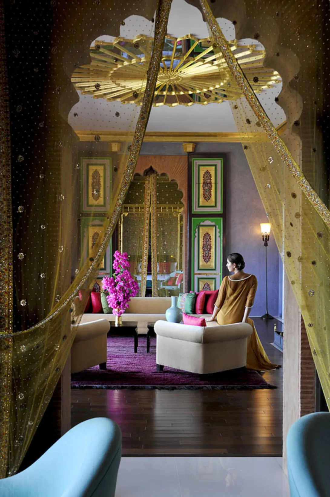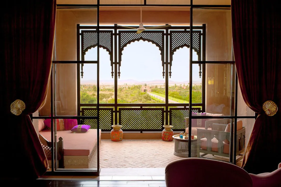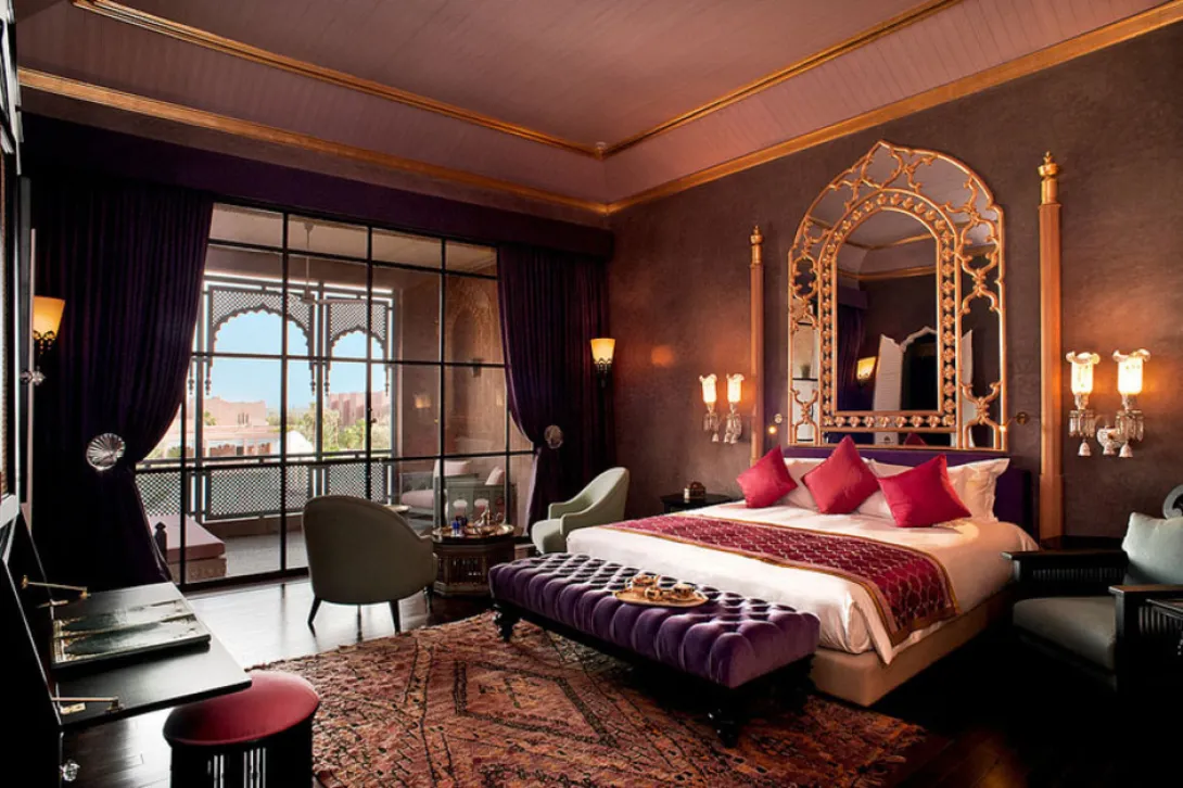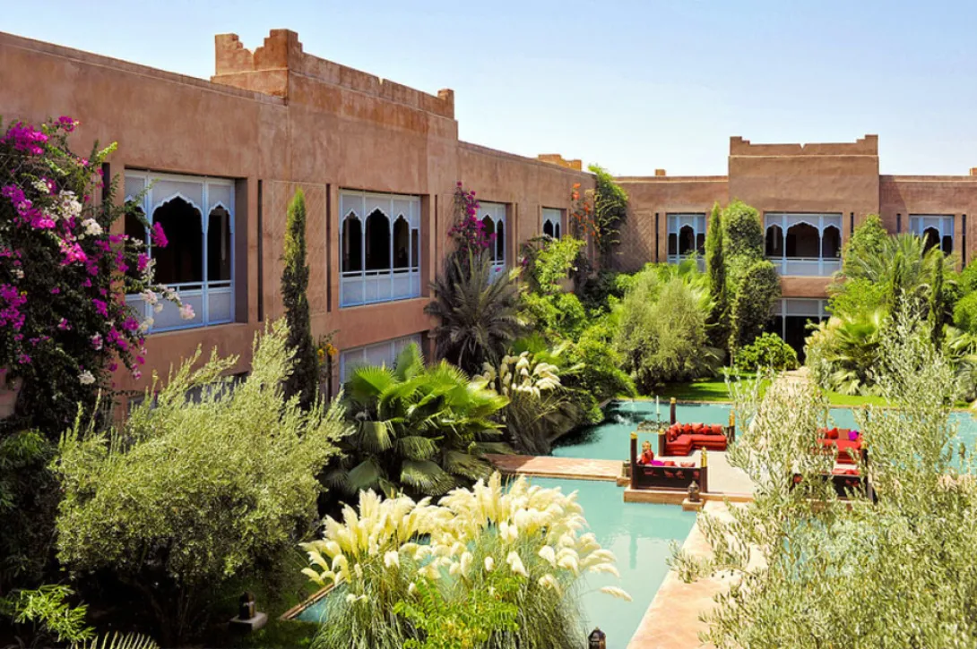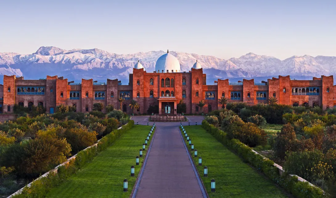 Majestosamente instalado na famosa região da Palmeraie, o Taj Palace Marrakech é um oásis neste deserto atemporal de palmeiras e oliveiras, junto aos contrafortes das inspiradoras montanhas do Atlas. Opulento e majestoso, o Palácio revela-se como uma bela pintura - uma mistura de estilos asiáticos, otomanos, mughal e marroquinos.Concebidos pelo pintor e arquitecto americano, Stuart Church, os quartos são luxuosamente decorados com cores e tecidos ricos. Inspirado nas tradições e detalhes dos nobres Kasbahs berberes, na riqueza e pompa indianas, no esplendor da arquitectura otomana e nas exóticas influências orientais, o Palácio é "uma pintura de contrastes".O Taj Palace Marrakech estende-se por 53 hectares de jardins paisagísticos e é a primeira extensão de um palácio fora da índia do Grupo Taj - serviço e o design são semelhantes ao dos Palácios Reais do grupo Taj na índia.Este palaciano oásis do deserto possui 161 espaçosos quartos, incluindo 25 suites de luxo, distribuídos entre o magnífico Palácio principal e quatro Riads exclusivos.Gastronomicamente, o hotel e os seus chefs reuniram os melhores ingredientes que abrangem a cozinha marroquina, mediterrânica, indiana e Pan-asiática. Os hóspedes podem jantar em alguns dos restaurantes mais elegantes e carismáticos do hotel, enquanto o lendário serviço Taj faz com que cada momento seja memorável.O Palace dispõe ainda de um spa, um verdadeiro tesouro dentro de um tesouro: o renomado Jiva Grande Spa está distribuído por 3.800 m², e oferece 14 salas de tratamento e dois enormes hammams, de acordo com a tradição marroquina.Annakhil, Palmeraie