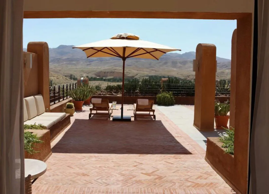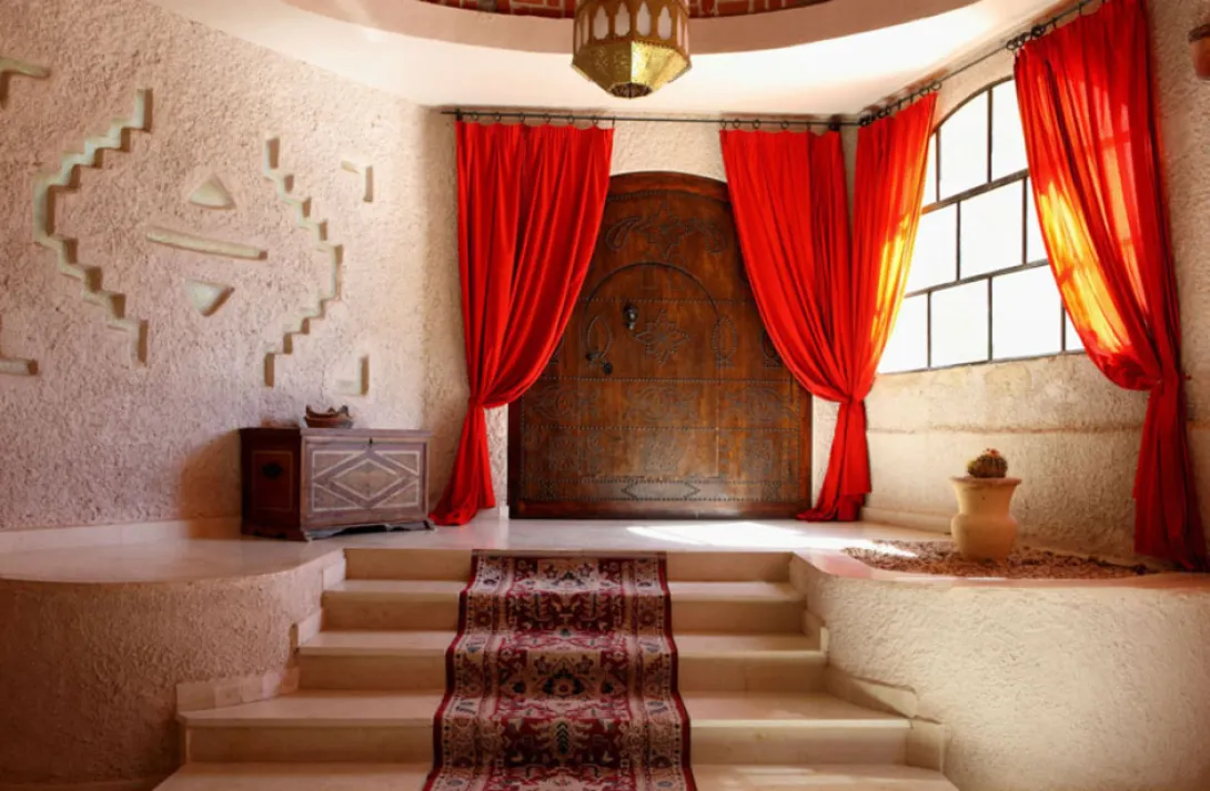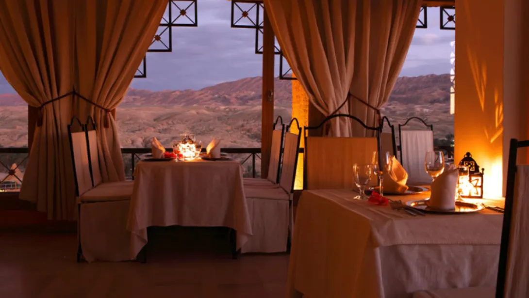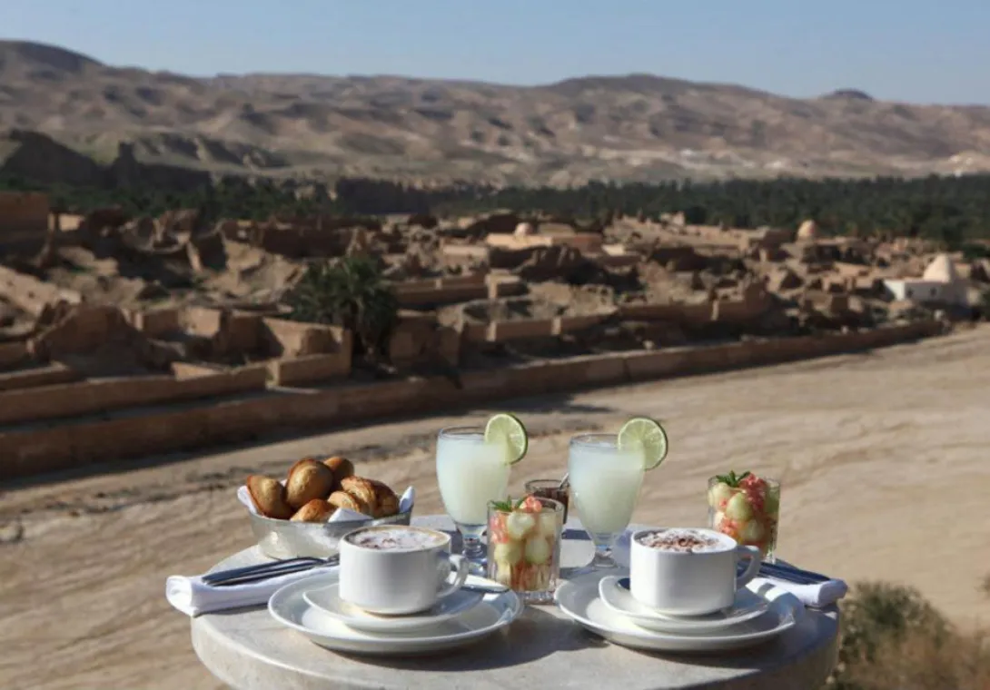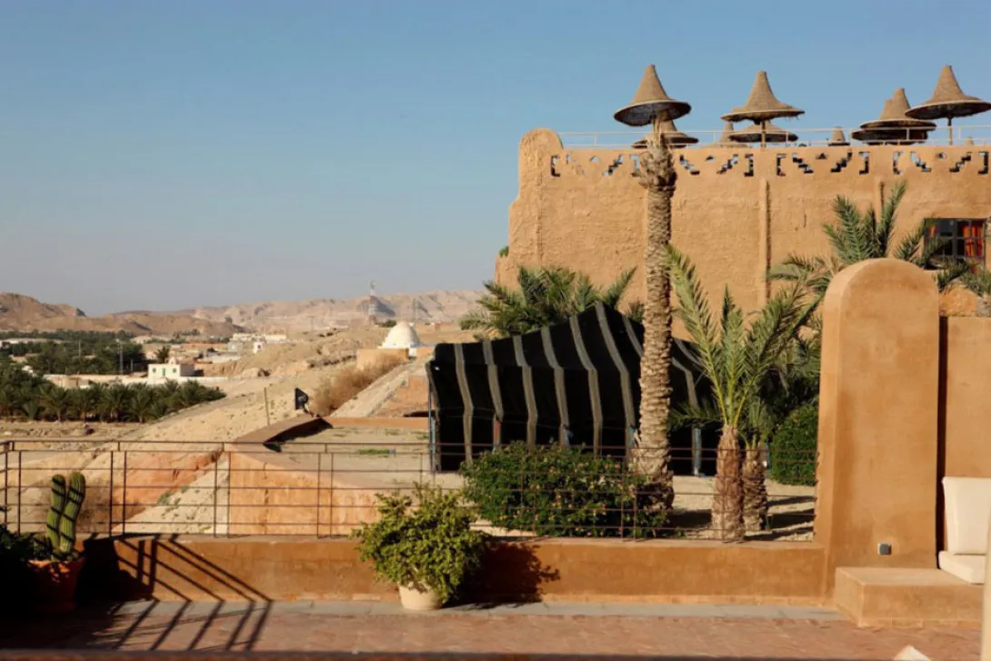 Dentro do hotel, o amor pela cultura local está bem patente: grandes e coloridos tapetes berberes decoram as áreas comuns, e a cerâmica de artesãos da região e pinturas a óleo de temas regionais enfeitam as paredes.Quando o final da tarde se transforma em noite e as ruínas se enchem lenta e suavemente de tons dourados, a brisa sopra até ao morro as plangentes canções das pombas, os sinos e o balido das cabras sendo levadas para casa.Para além de um excelente spa (com produtos e tratamentos da marca tunisina Amarante), com um típico hammam e todos os rituais que lhe estão associados, o hotel oferece ainda uma das melhores gastronomias da região. Servida em atmosferas exóticas e inesquecíveis, a sua cozinha tunisina combina-se na perfeição com toques mediterrânicos.