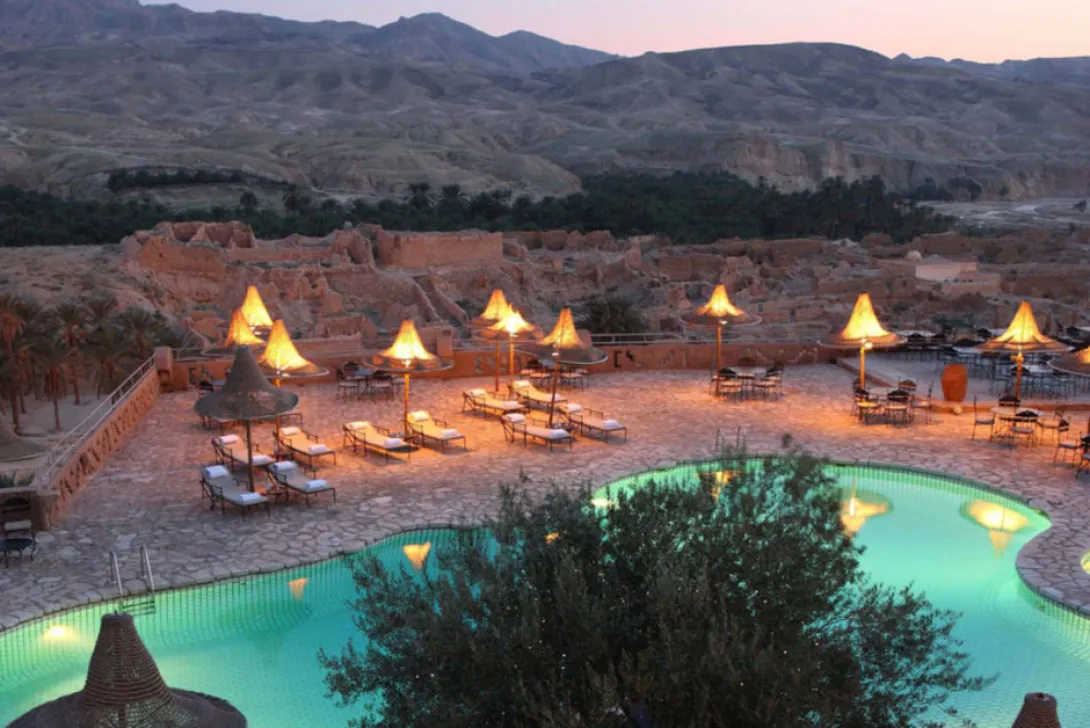 às portas do deserto tunisino, e face às majestosas montanhas do Atlas, o Tamerza Palace vigia as ruínas da aldeia berbere de Tamerza, abandonada após fortes chuvadas no final dos anos 60.Fundada em 1992, este hotel de charme, harmoniosamente integrado na paisagem, é uma verdadeira homenagem às tradições berberes.Das alturas do Tamerza, não é invulgar observar as aves migratórias vindas da Europa, que encontram no oásis de montanha um refúgio na sua longa viagem até áfrica. E, por alguns dias, tal como os pássaros, os hóspedes do hotel procuram tranquilidade e relaxamento.Com os seus 109 quartos e suites com vistas panorâmicas sobre as montanhas do Atlas, o oásis e a sonolenta aldeia de Tamerza, o hotel é um refúgio onde os visitantes reabastecem energias e podem, também, desfrutar de um magnífico Spa.O Tamerza é, sem dúvida, um dos hotéis mais luxuosos da Tunísia. A arquitectura do hotel combina perfeitamente com as montanhas do deserto contra o qual parece fundir-se, e o seu interior é uma obra-prima de design, simples e bem adaptado à aridez do deserto que se estende para além dos seus muros.às portas do deserto do Saara, a menos de 70 km do aeroporto de Tozeur, é o destino perfeito para relaxar e descobrir a excepcional beleza da natureza.